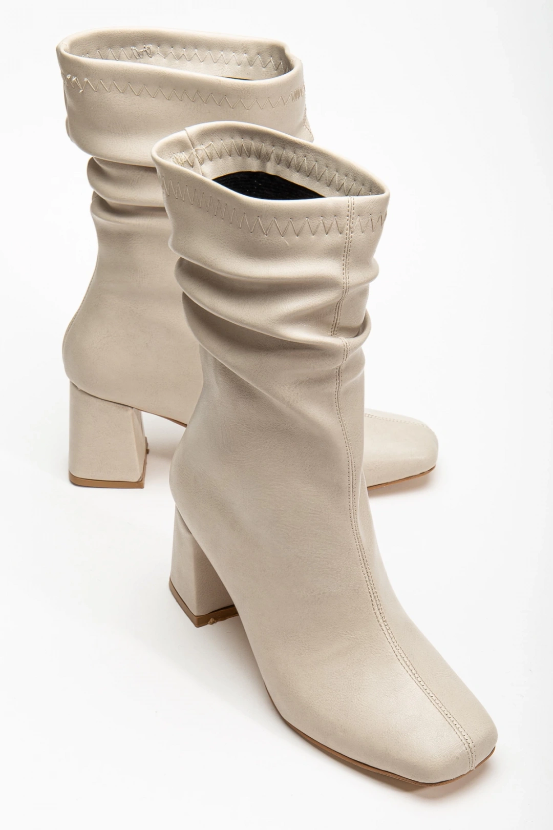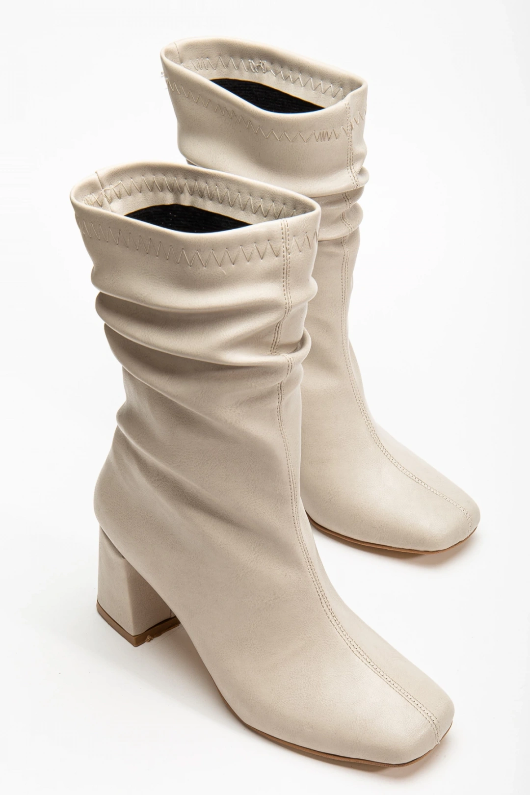 Liora Kadın Bej Arkası Fermuarlı Sivri Burun Büzgülü Çizme