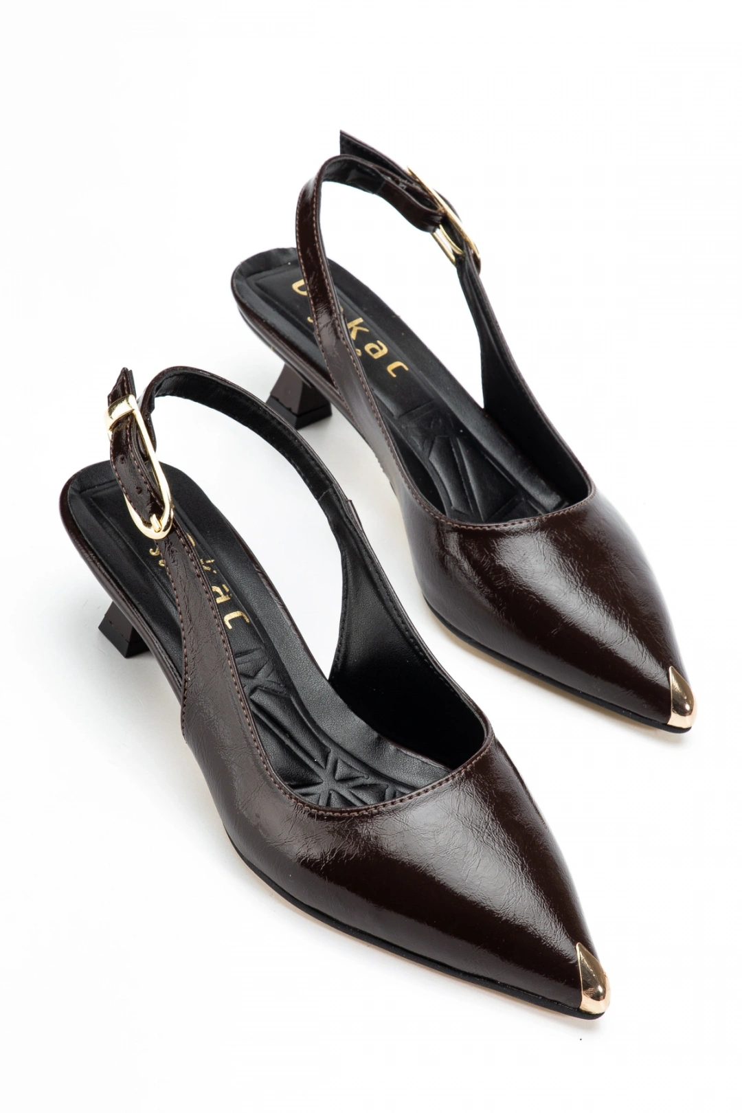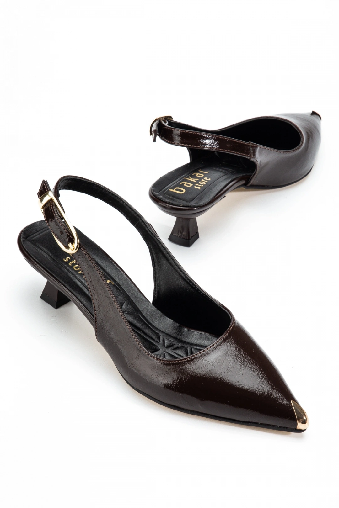 Kadın Kahverengi Arkası Açık Toka Detaylı Sivri Burun Topuklu Ayakkabı