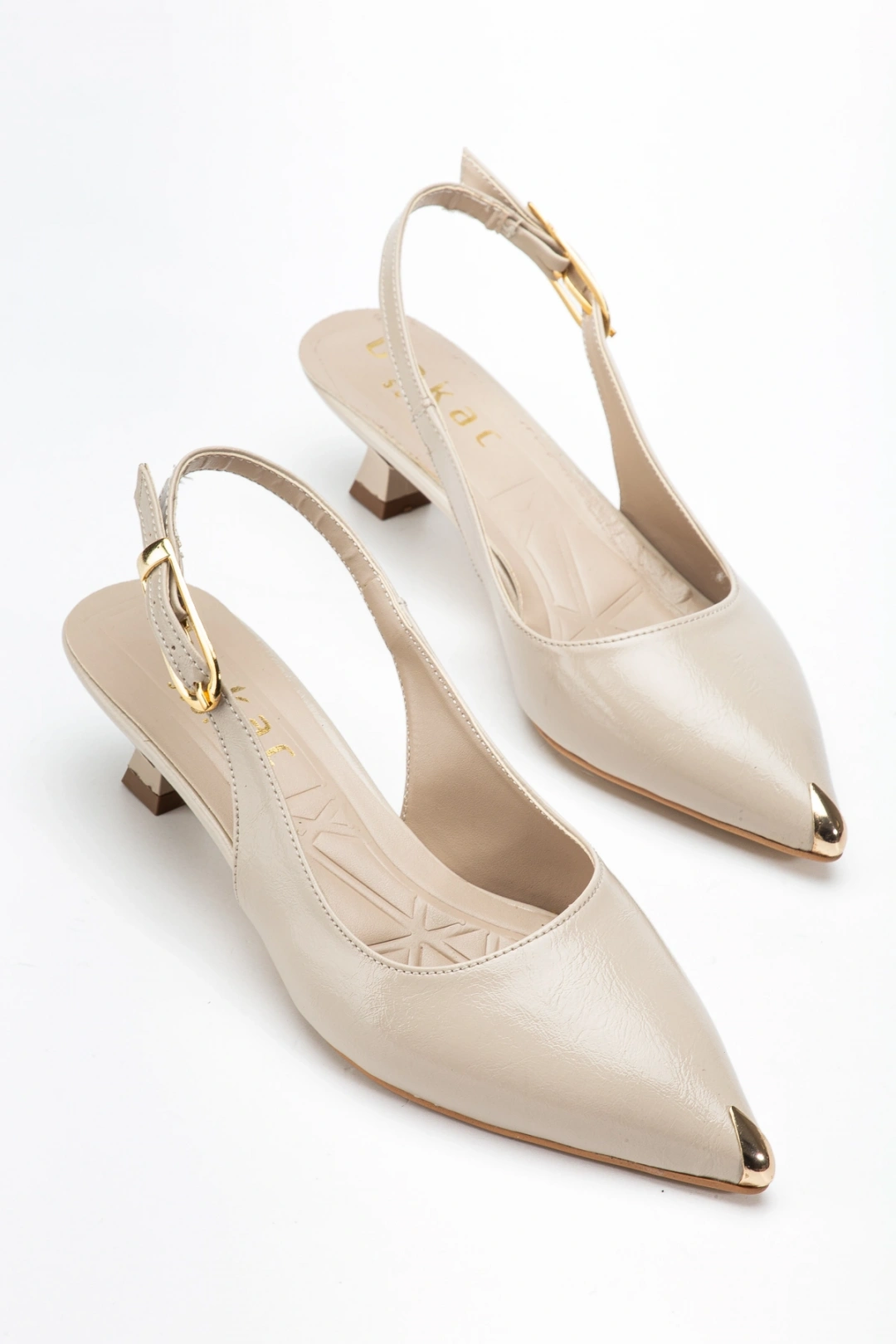 Kadın Bej Rengi Arkası Açık Sivri Burun Topuklu Ayakkabı