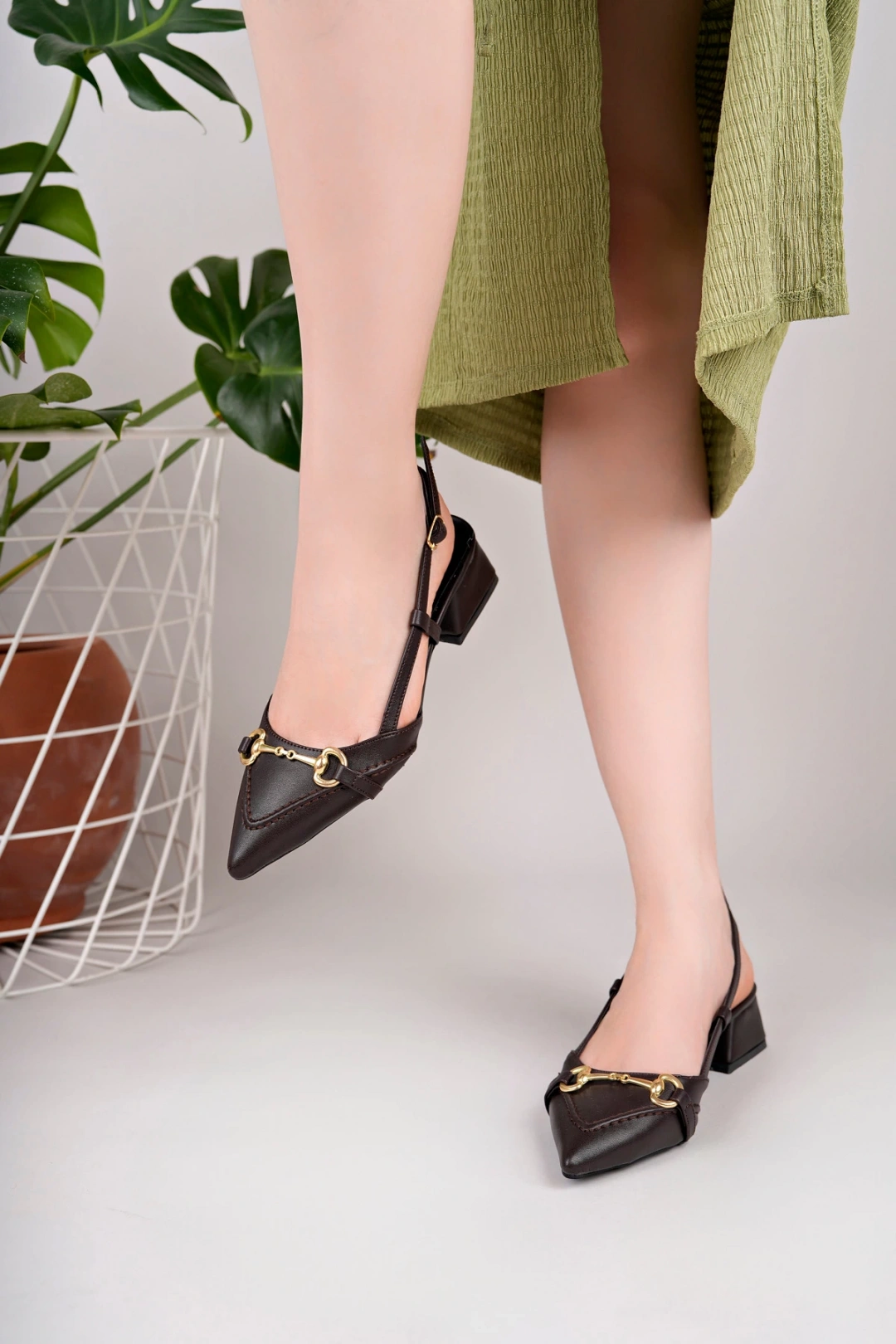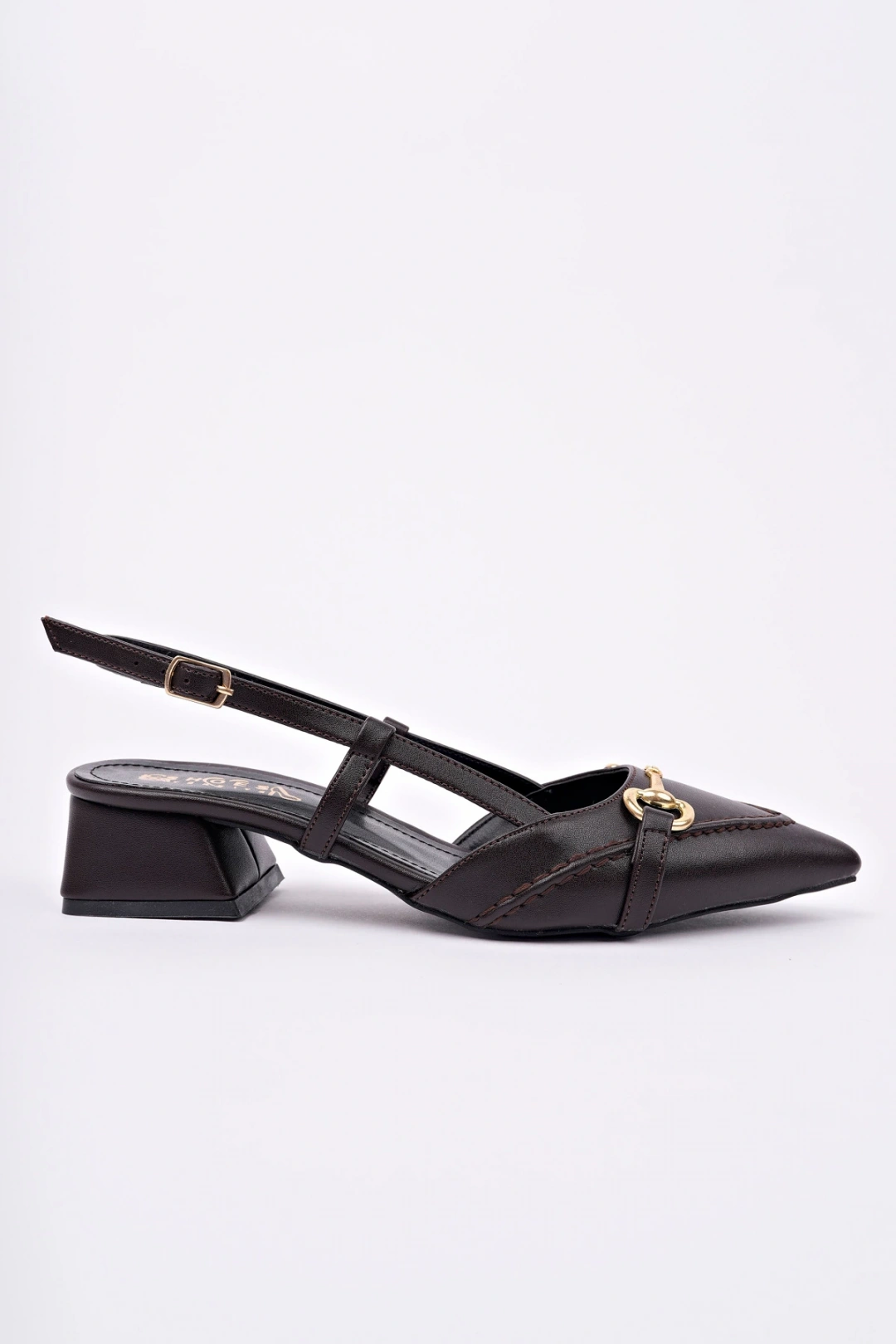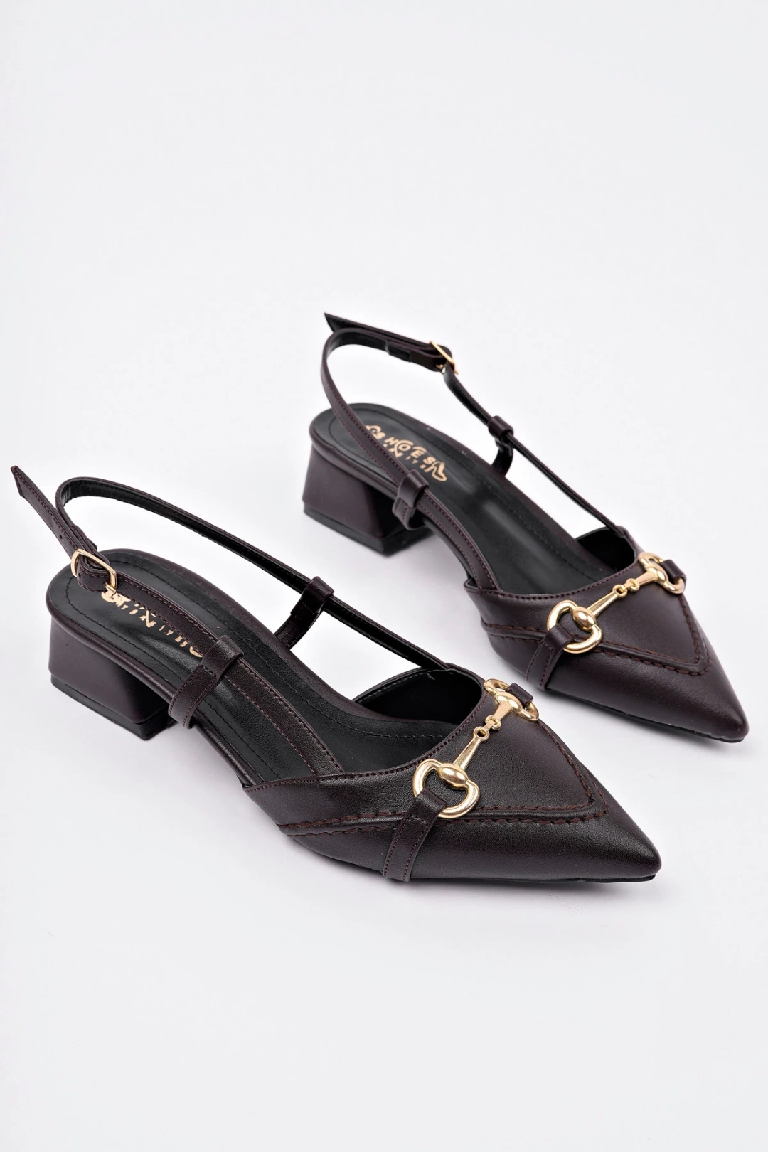 Kadın Acı Kahverengi Saraçlı Tokalı Sivri Burun Topuklu Ayakkabı