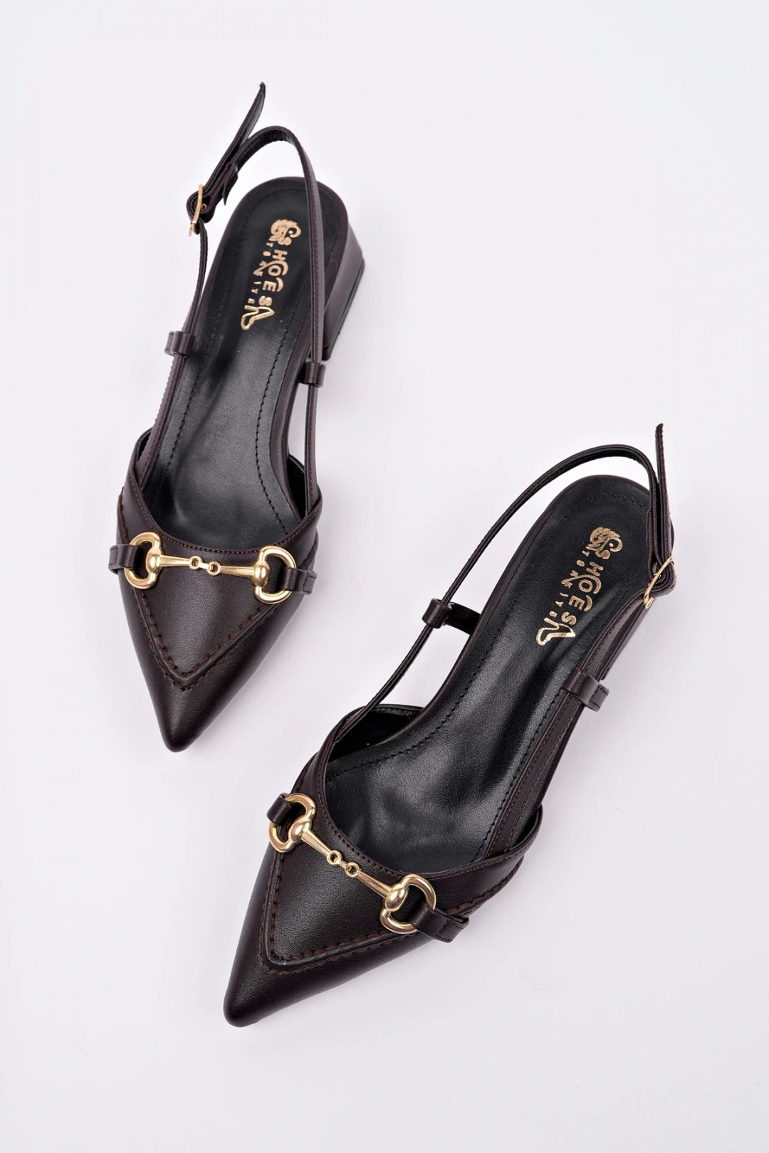 Kadın Kahverengi Cilt Tokalı Sivri Şık Topuklu Stiletto Ayakkabı