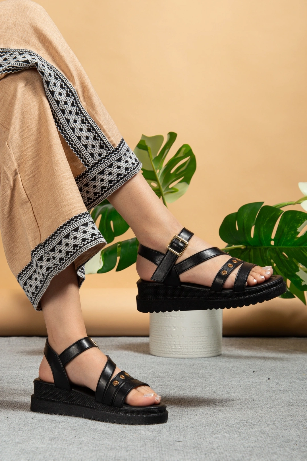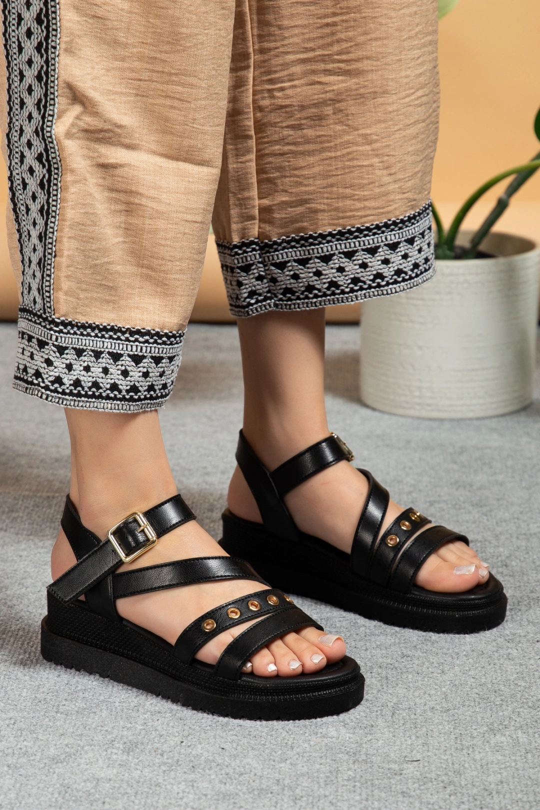 Kadın Siyah Aksesuar Detaylı Günlük Sandalet