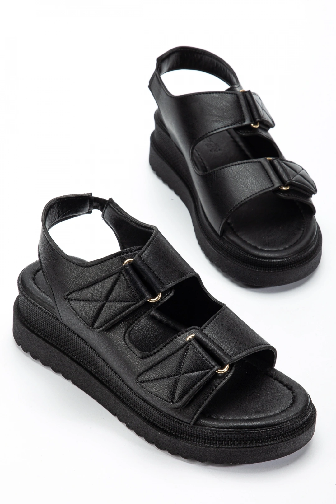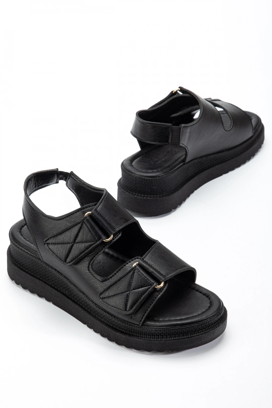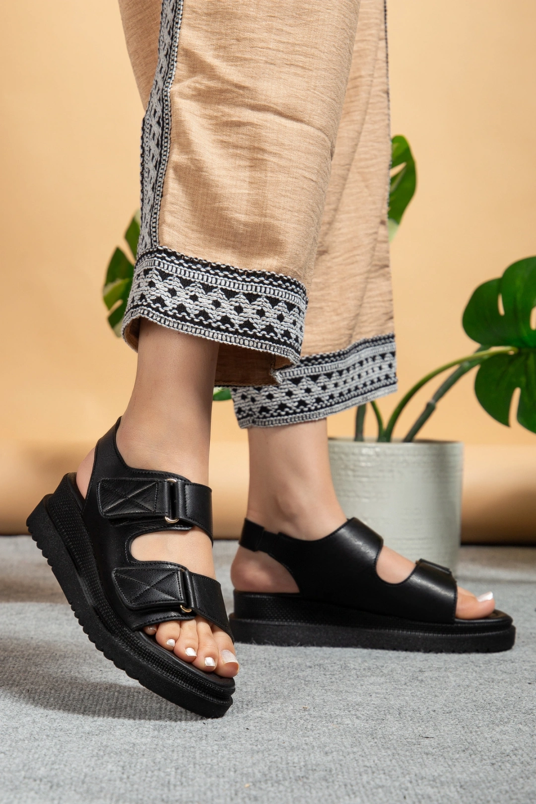 Kadın Siyah Cırtcırt Detaylı Günlük Sandalet