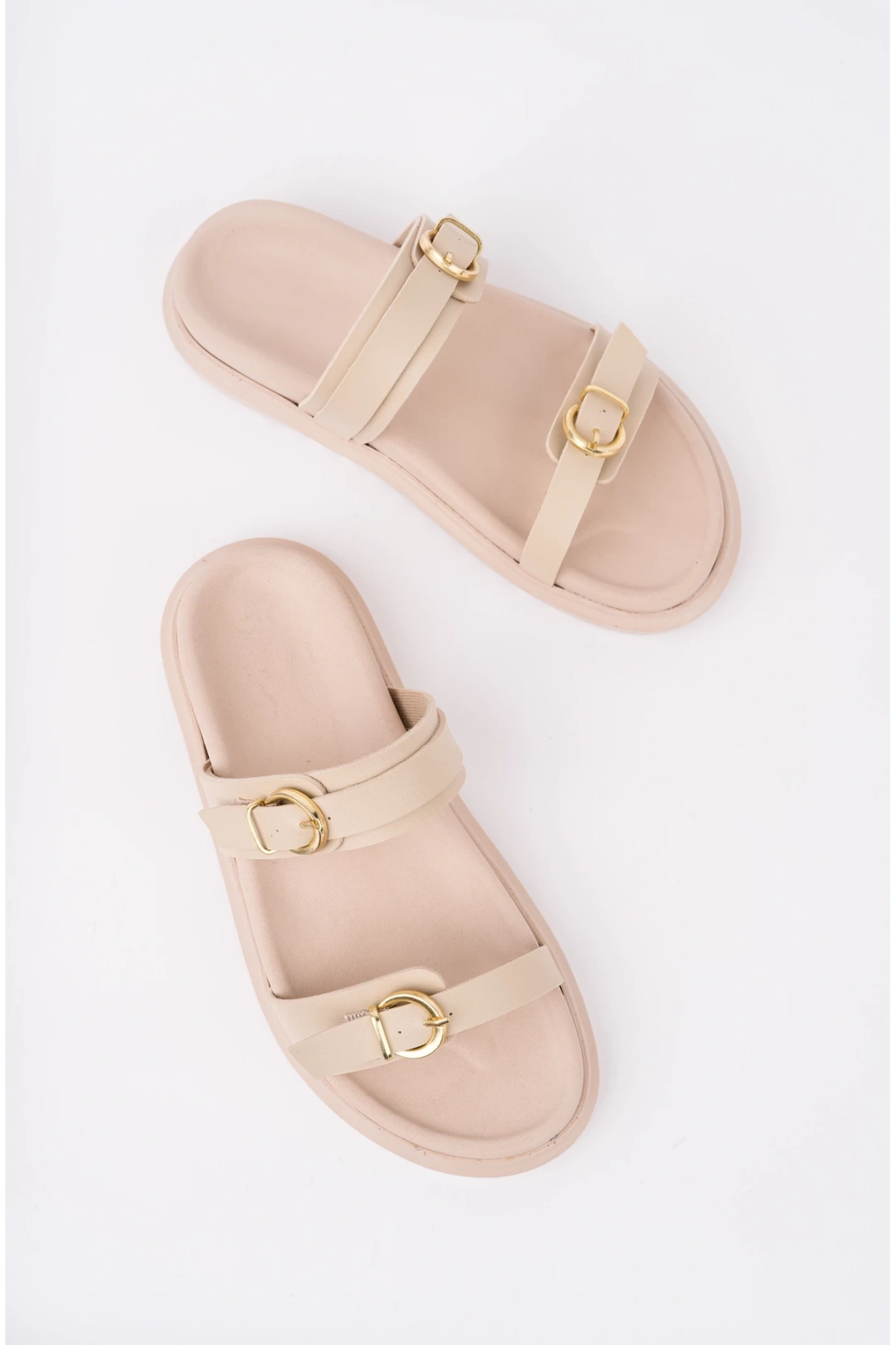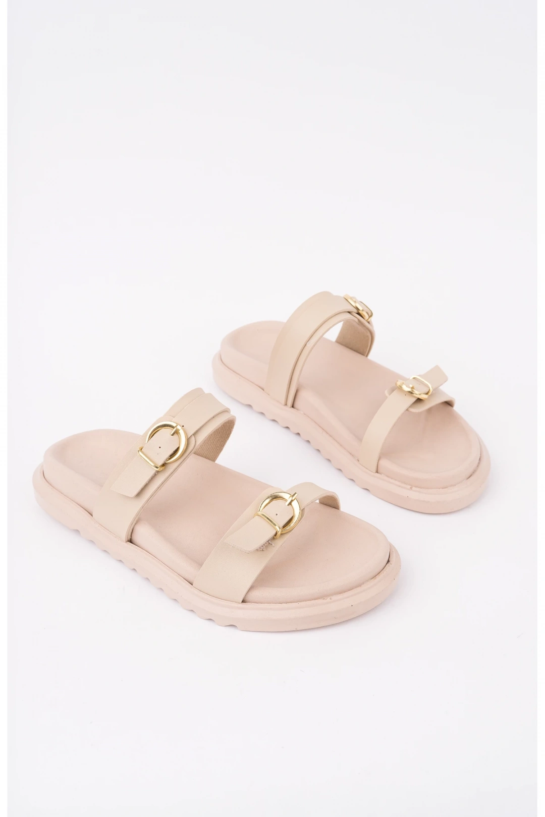 Kadın Bej Günlük Çift Kat Rahat Taban Sandalet Terlik