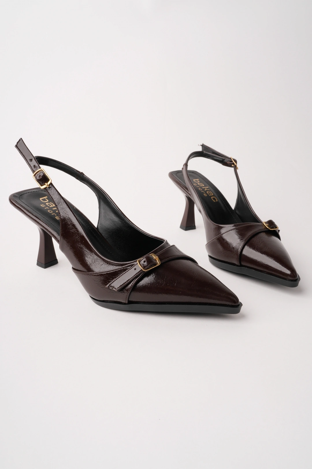 Kadın Kahverengi Arkası Açık Toka Detaylı Sivri Burun Topuklu Ayakkabı