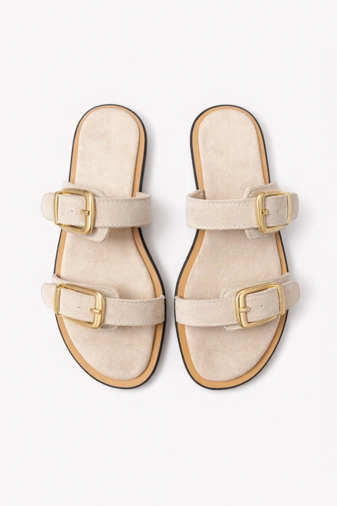 Kadın Bej Süet Çift Biyeli Rahat Taban Terlik