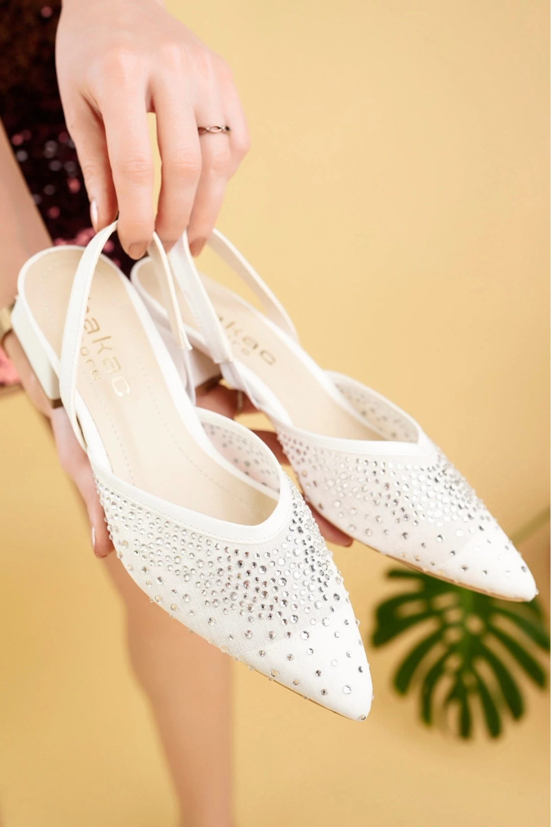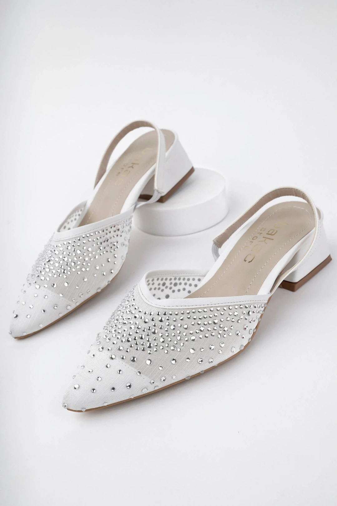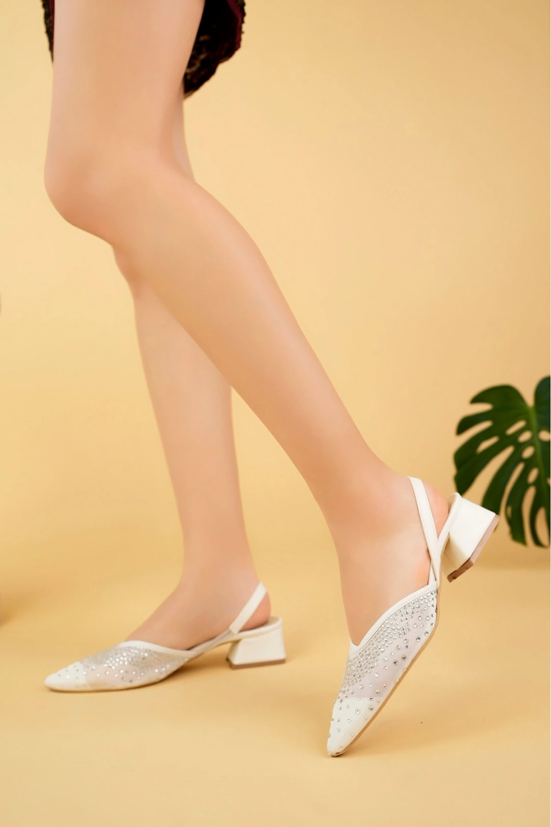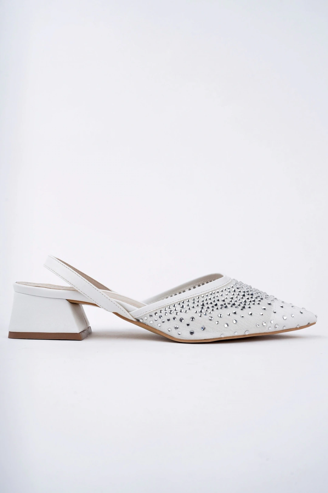 Kadın Beyaz Kısa Topuklu Taşlı Ayakkabı