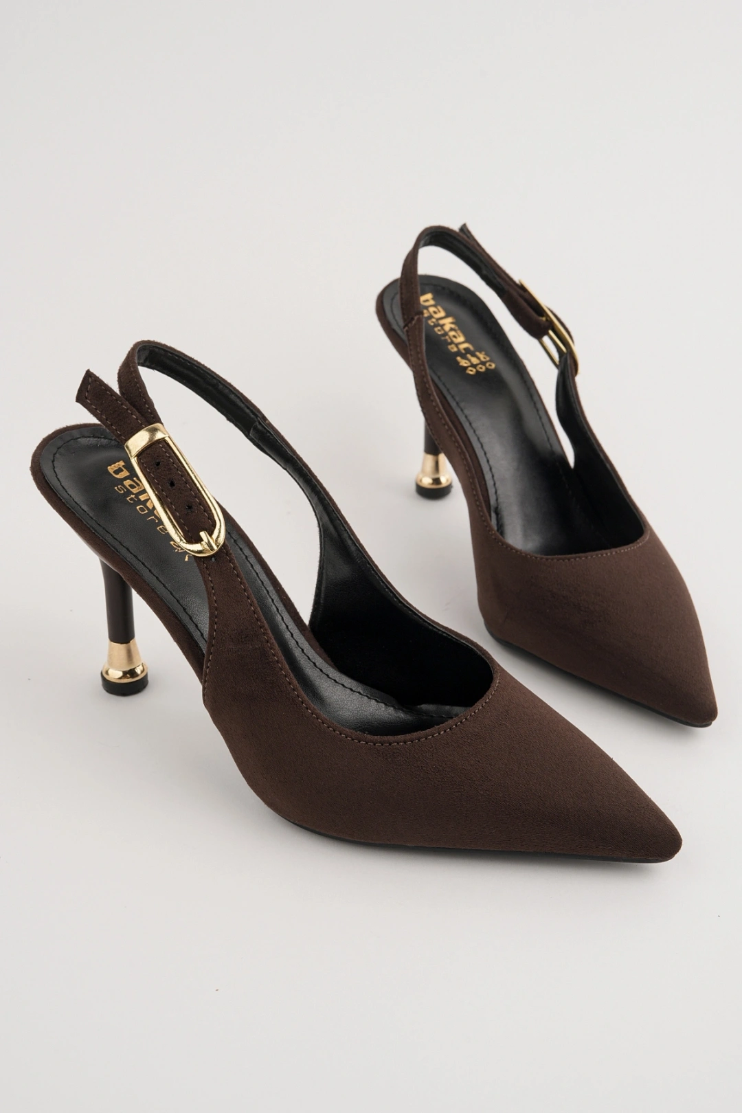 Kadın Kahverengi Süet Tokalı Sivri Şık Topuklu Stiletto Ayakkabı