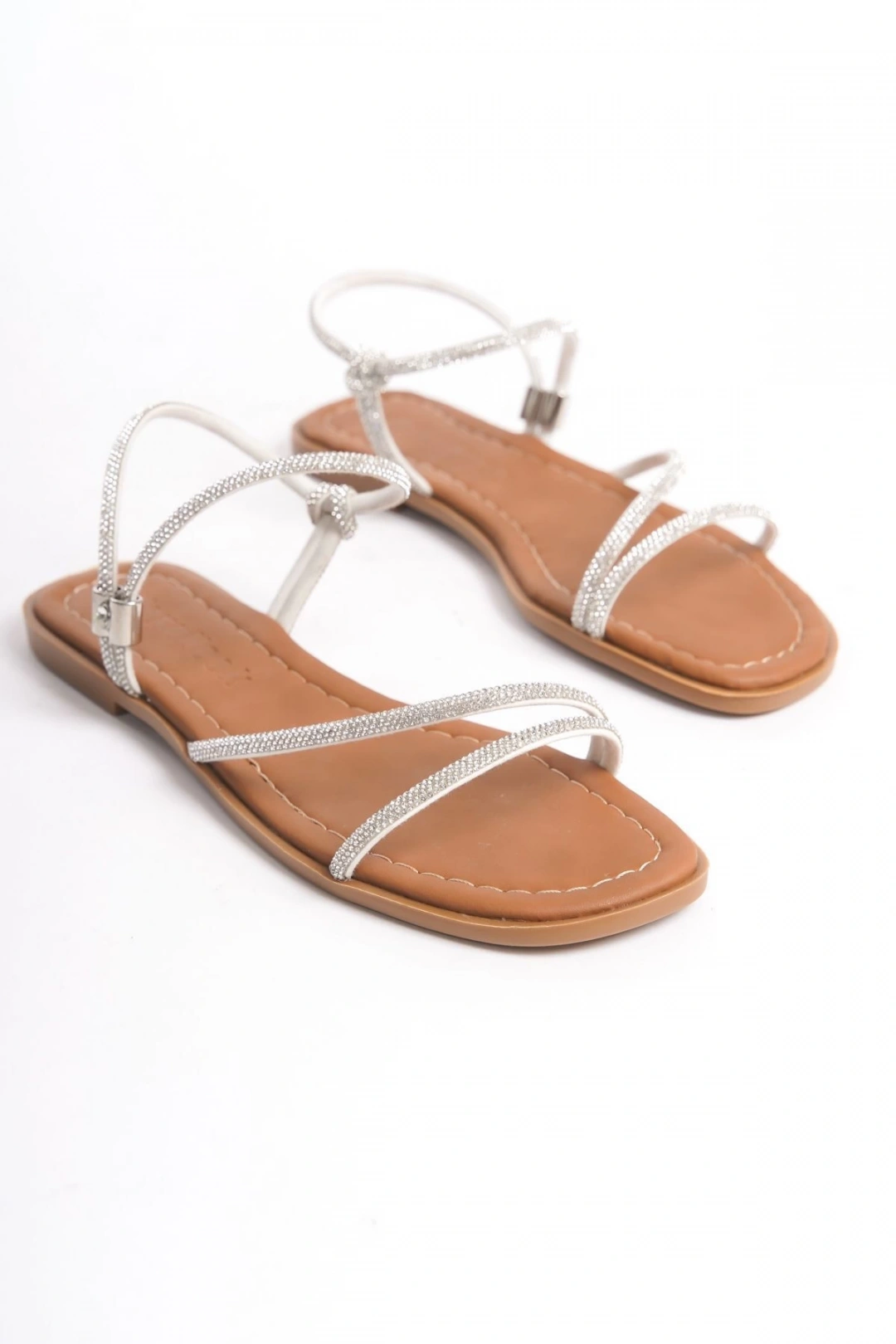 Kadın Beyaz Taşlı Yeni Sezon Günlük Sandalet
