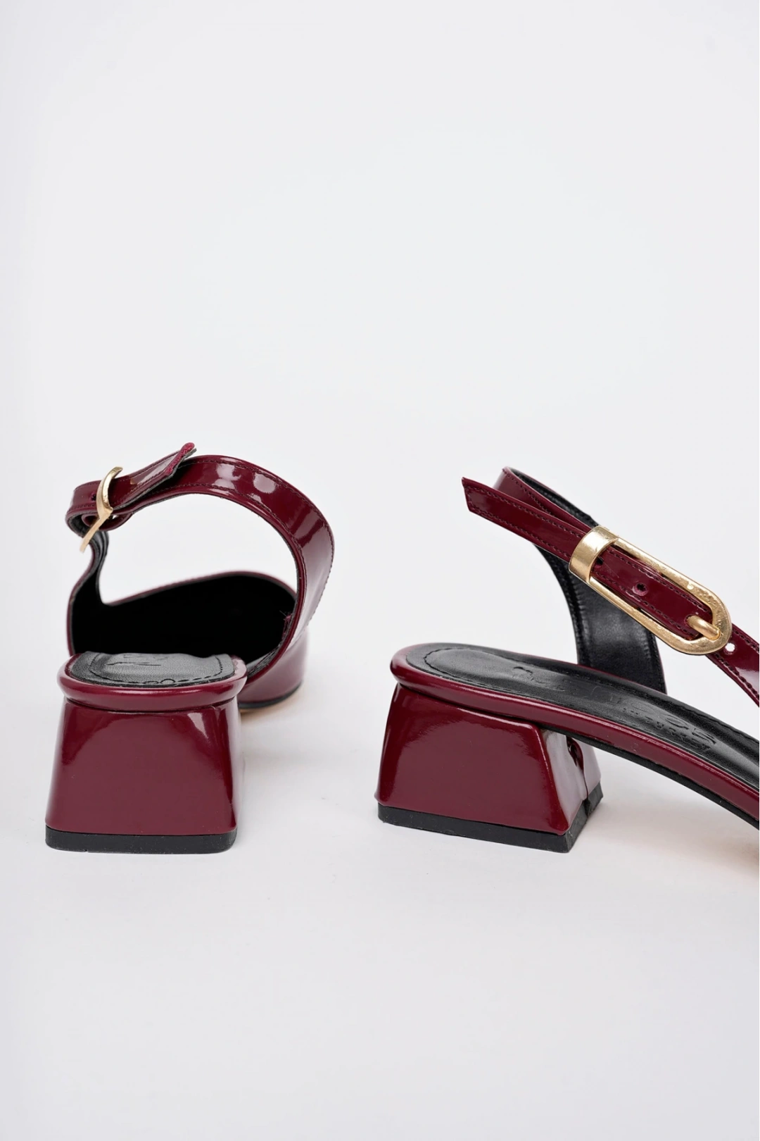 Kadın Bordo Rugan Arkası Açık Sivri Burun Klasik Kısa Topuklu Ayakkabı