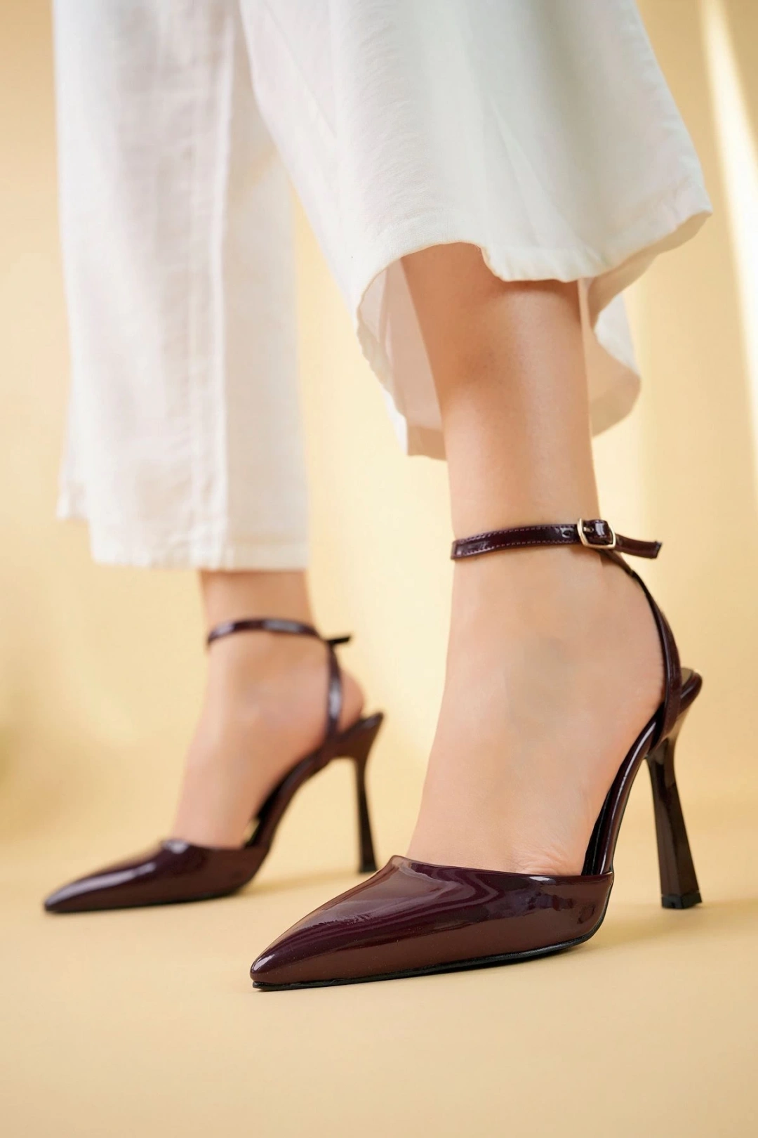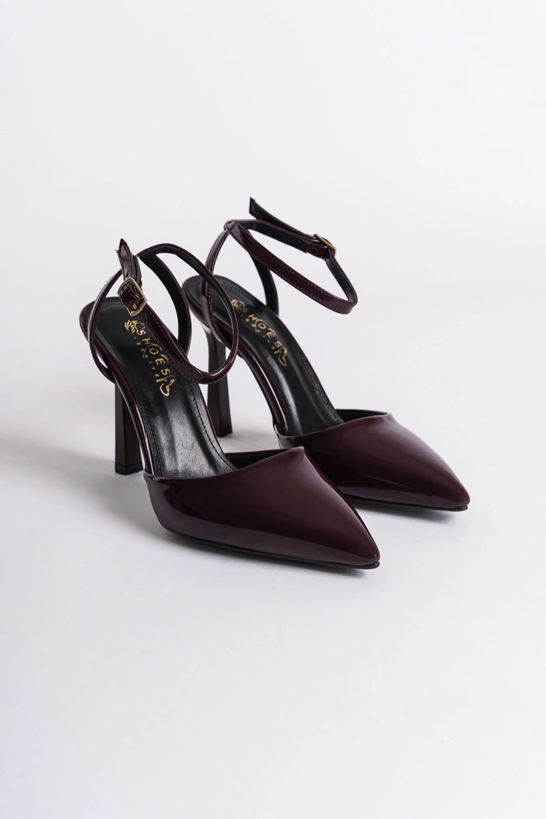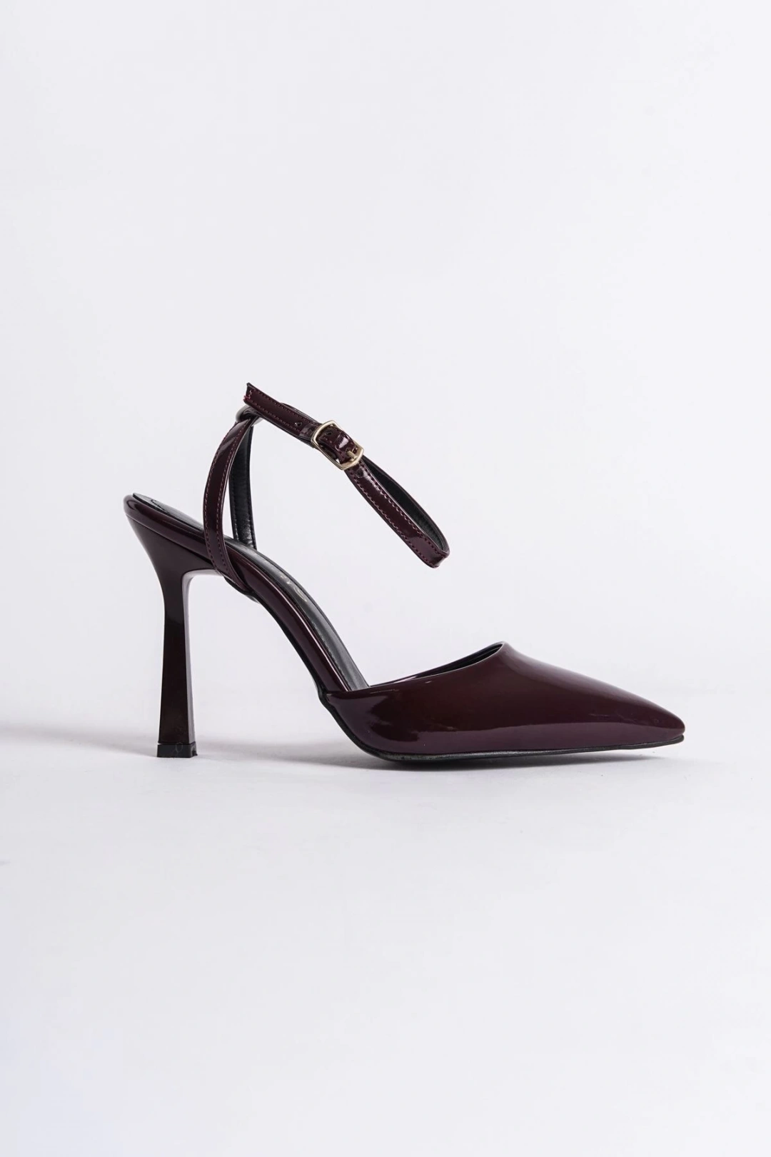 Kadın Bordo Rugan Tokalı Sivri Şık Topuklu Stiletto Ayakkabı