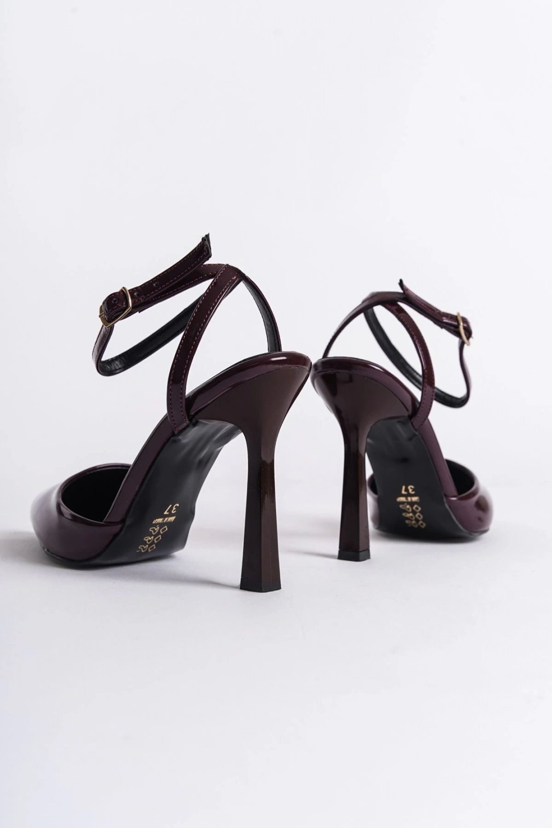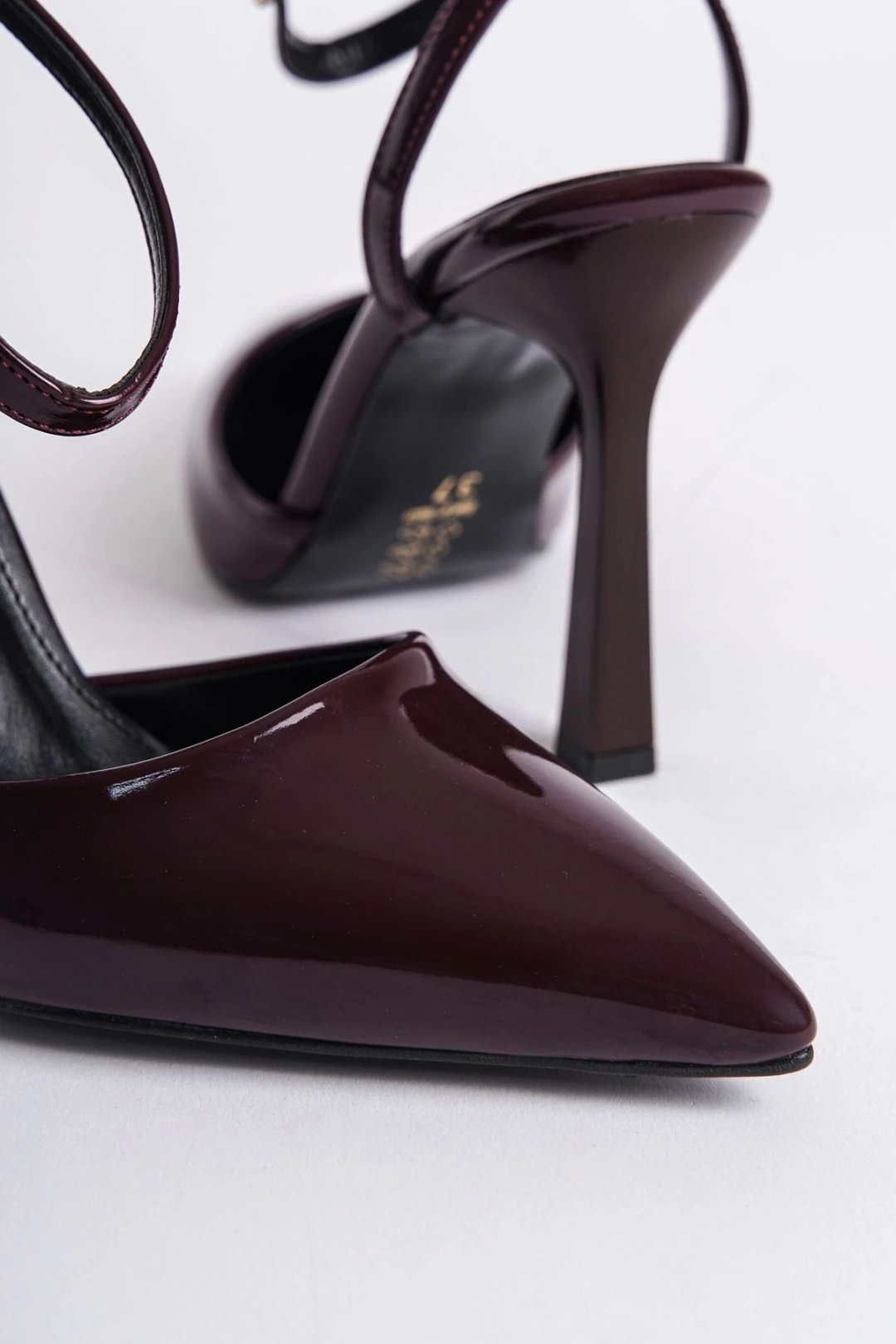 Kadın Bordo Rugan Arkası Bantlı Topuklu Ayakkabı