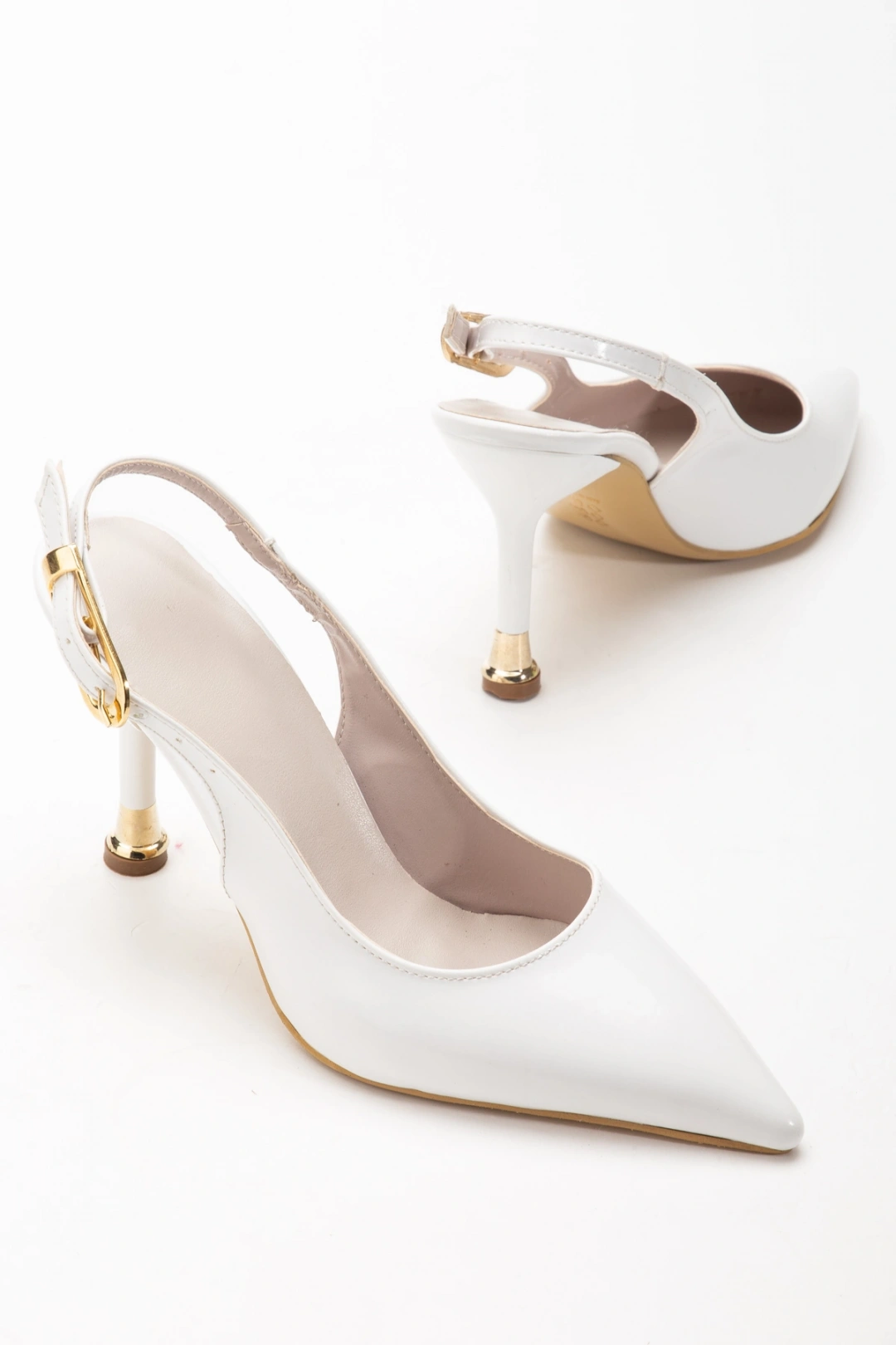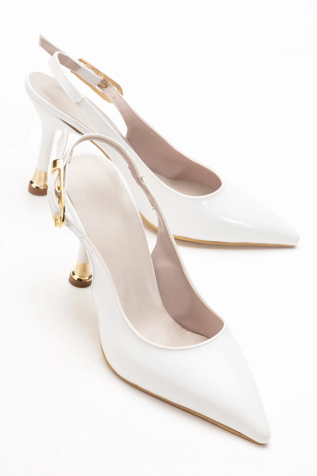 Kadın Beyaz Rugan Tokalı Sivri Şık Topuklu Stiletto Ayakkabı