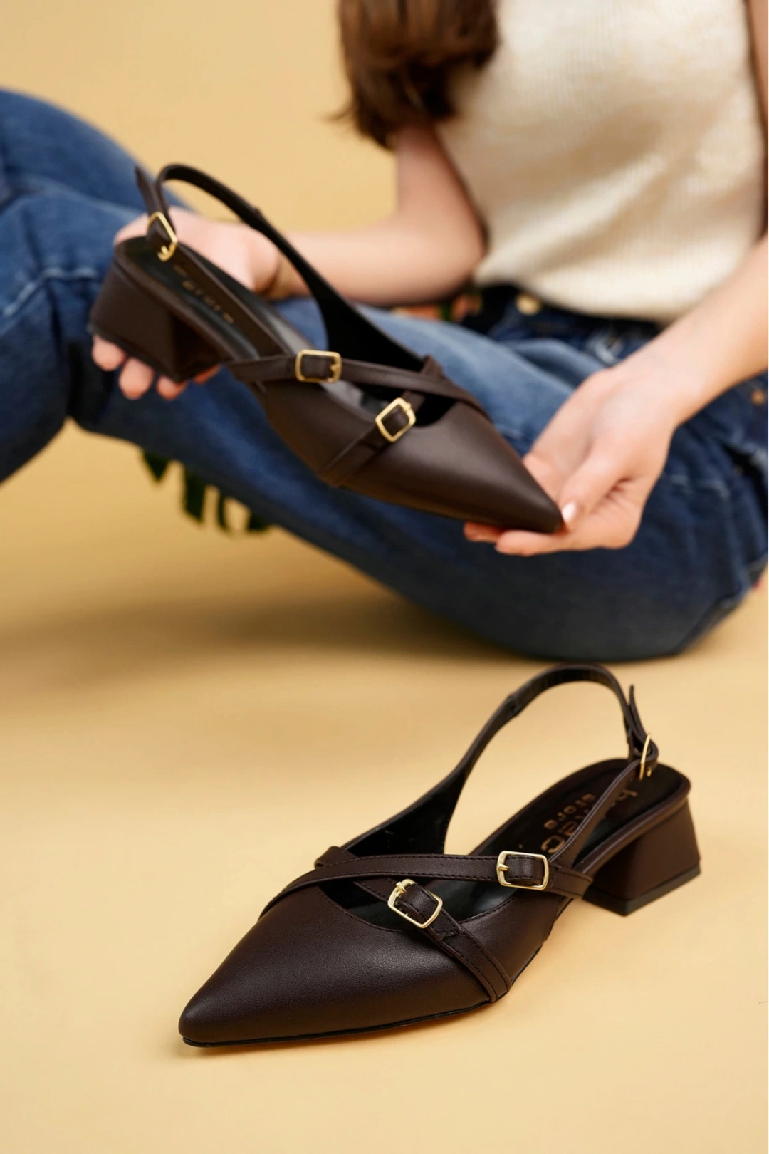Kadın Kahverengi Çapraz Bantlı Yeni Sezon Kısa Topuklu Ayakkabı