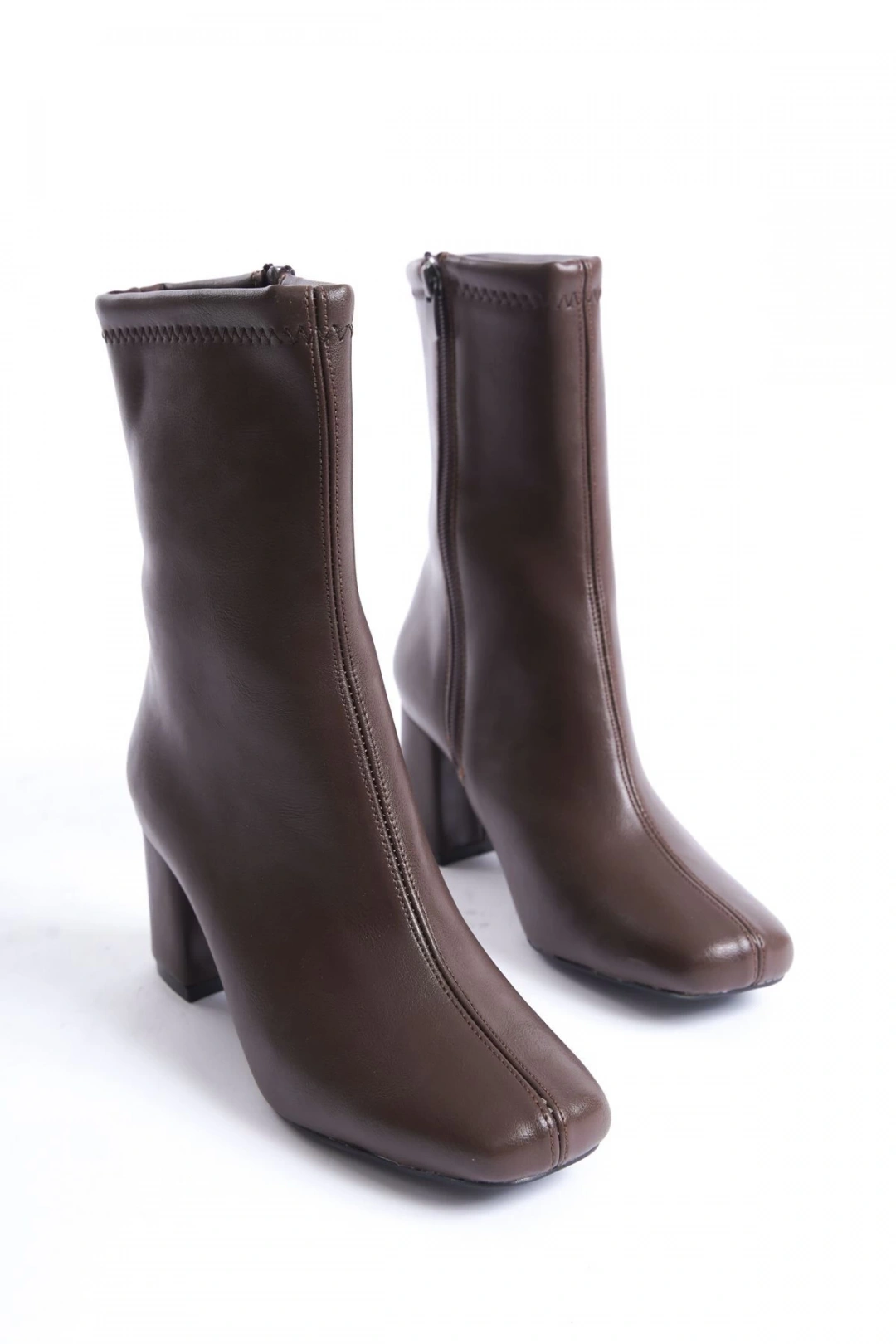 Kadın Kahverengi Cilt Orta Boy Topuklu Bot