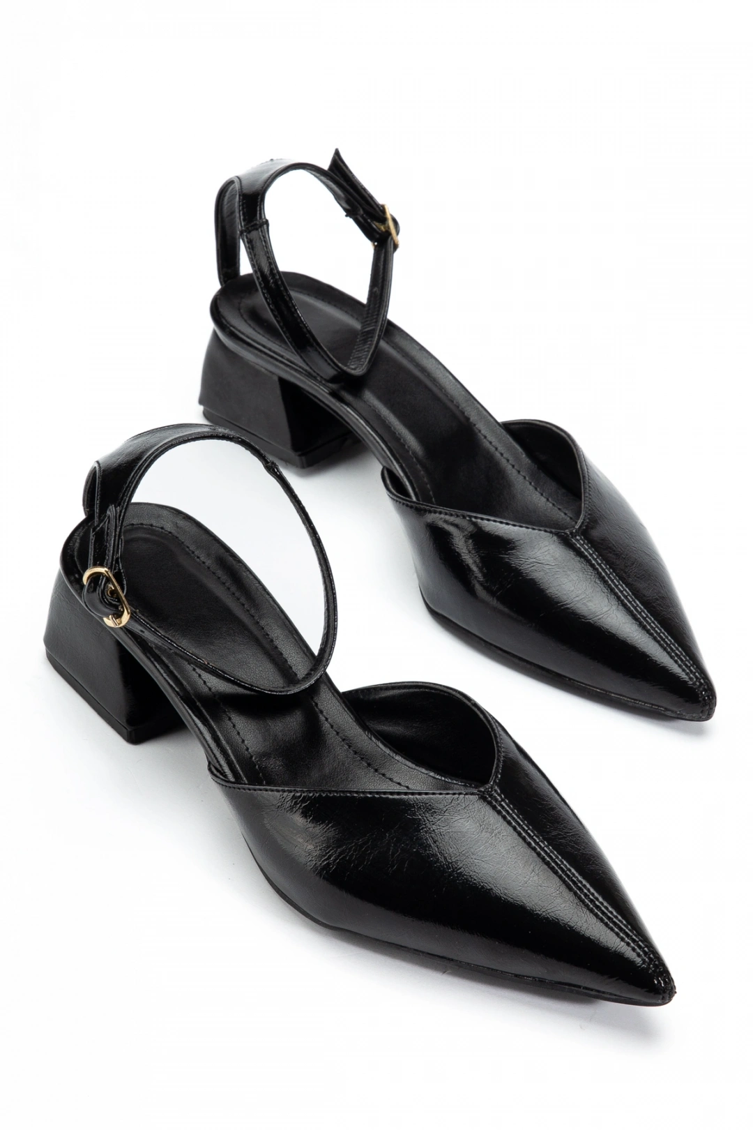 Kadın Siyah Arkası Açık Toka Detaylı Sivri Burun Topuklu Ayakkabı