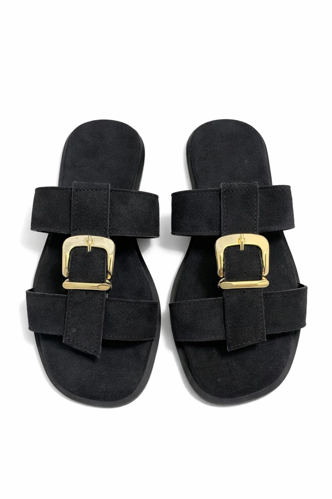 Kadın Siyah Süet Kumaş Gold Toka Detaylı Rahat Taban Terlik