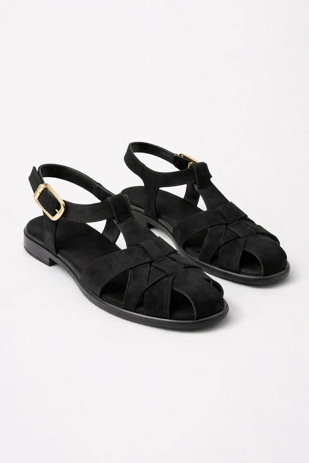 Kadın Siyah Süet Kumaş Rahat Taban Günlük Sandalet