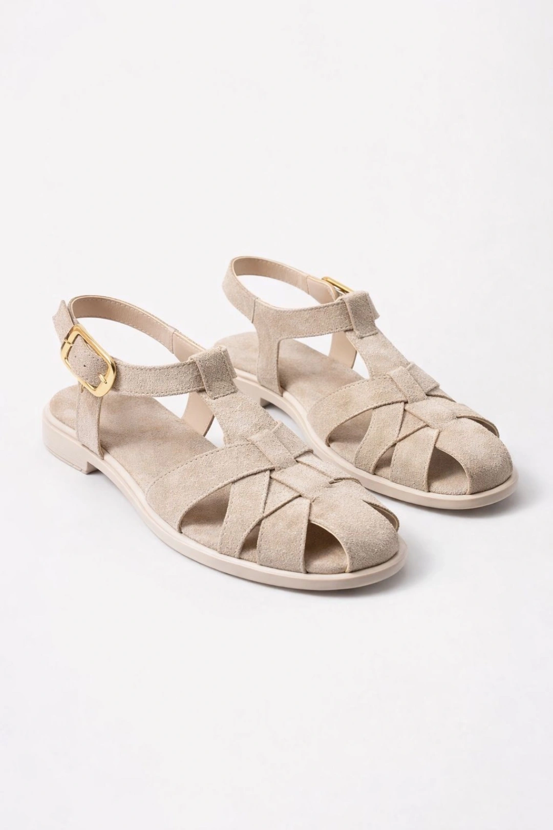 Kadın Bej Süet Kumaş Rahat Taban Günlük Sandalet