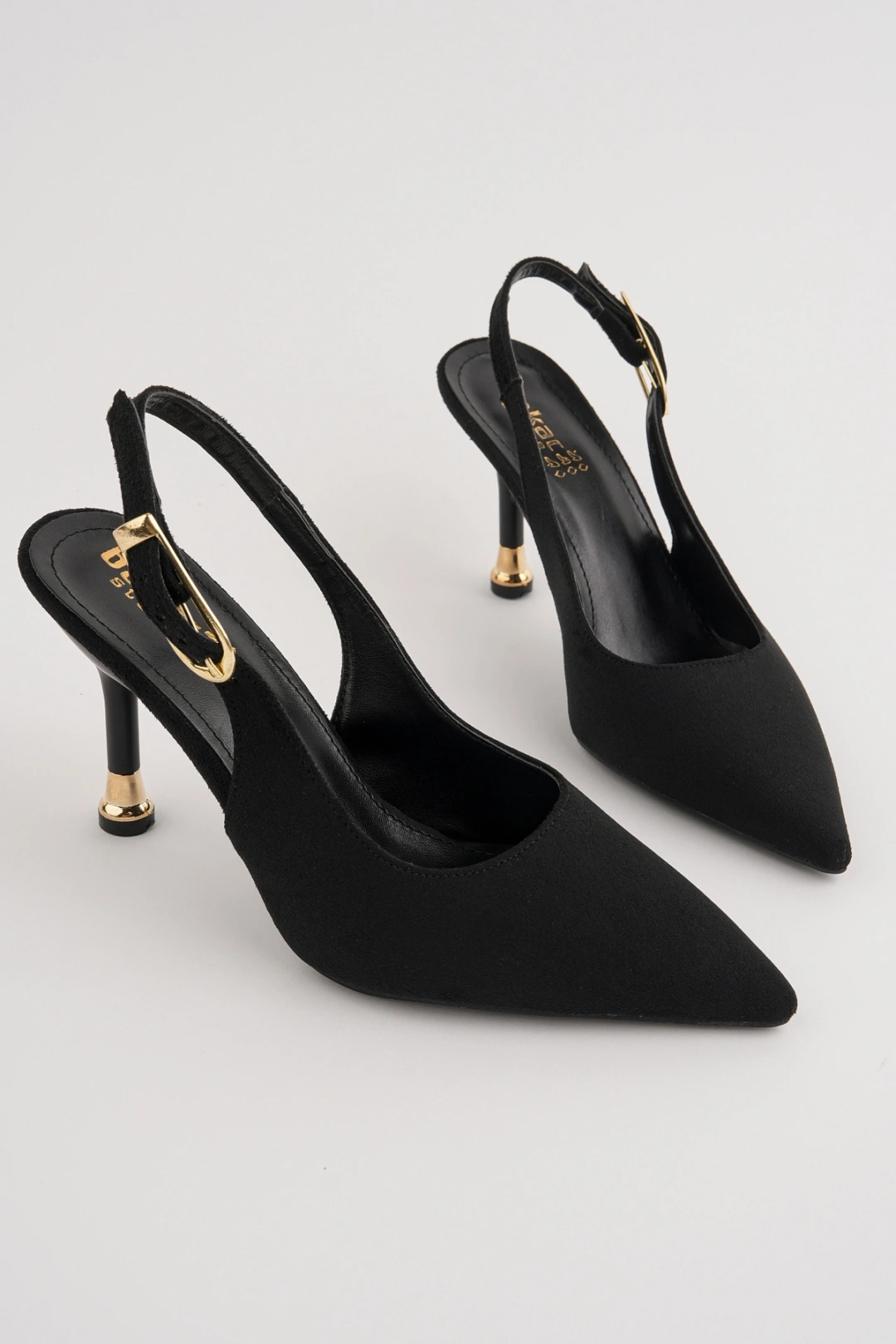 Kadın Siyah Süet Tokalı Sivri Şık Topuklu Stiletto Ayakkabı
