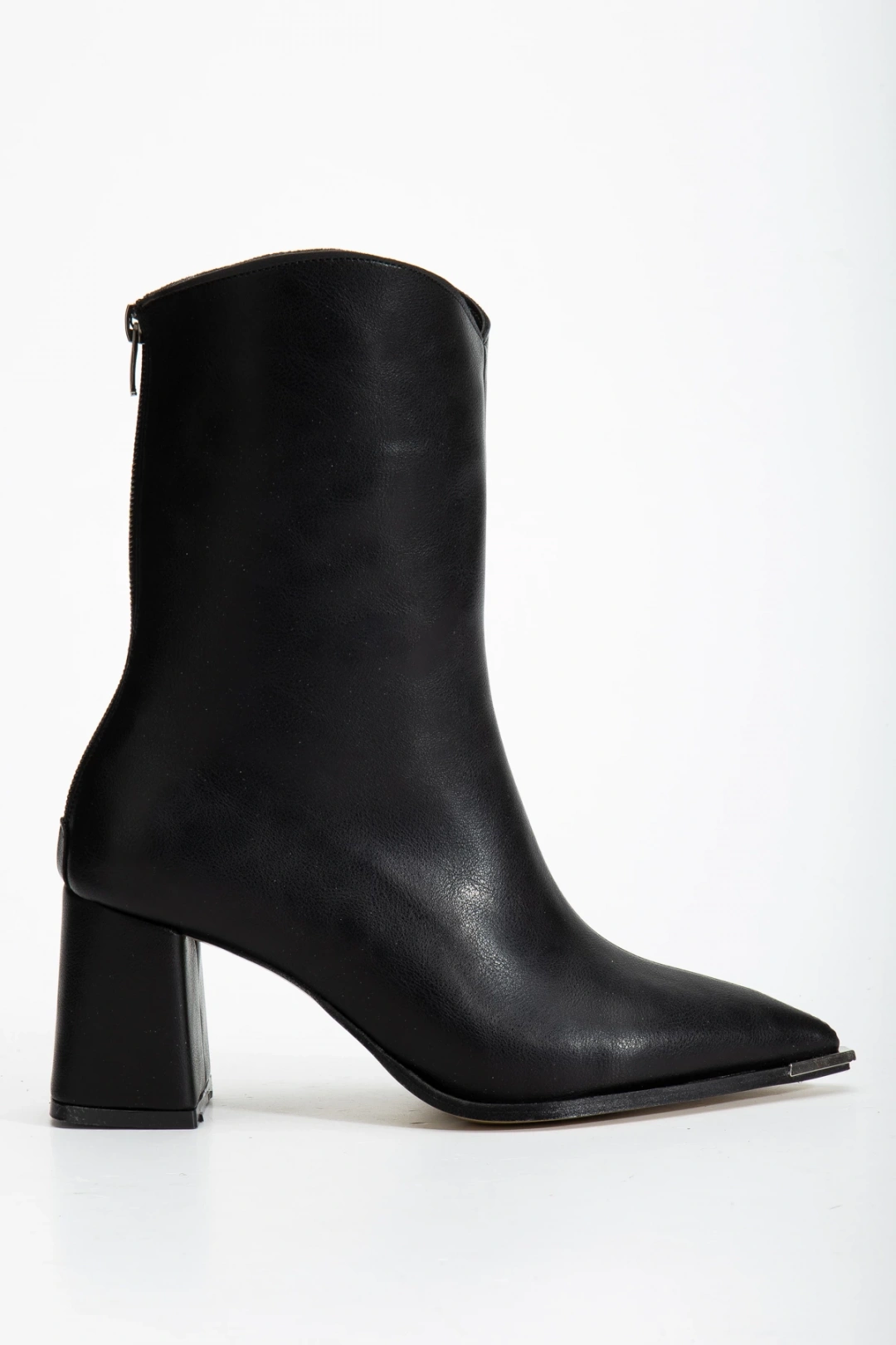 Kadın Siyah Arkadan Fermuarlı Sivri Burun Metal Detaylı Topuklu Bot