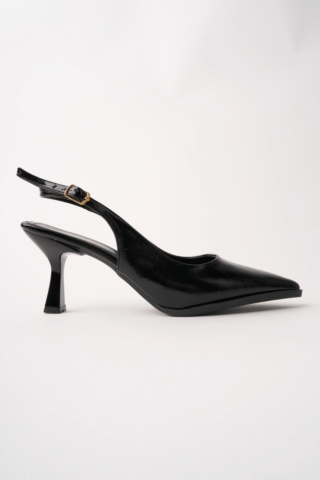 Kadın Siyah Arkası Açık Toka Detaylı Sivri Burun Topuklu Ayakkabı