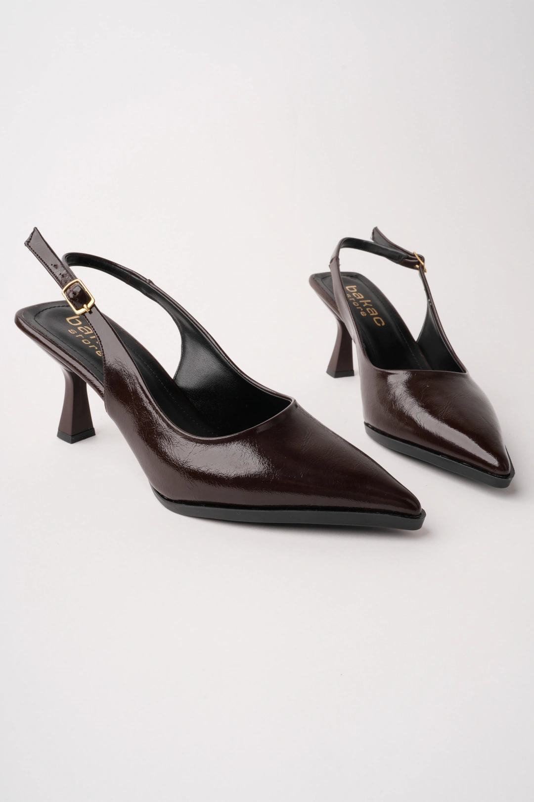 Kadın Kahverengi Arkası Açık Sivri Burun Topuklu Ayakkabı