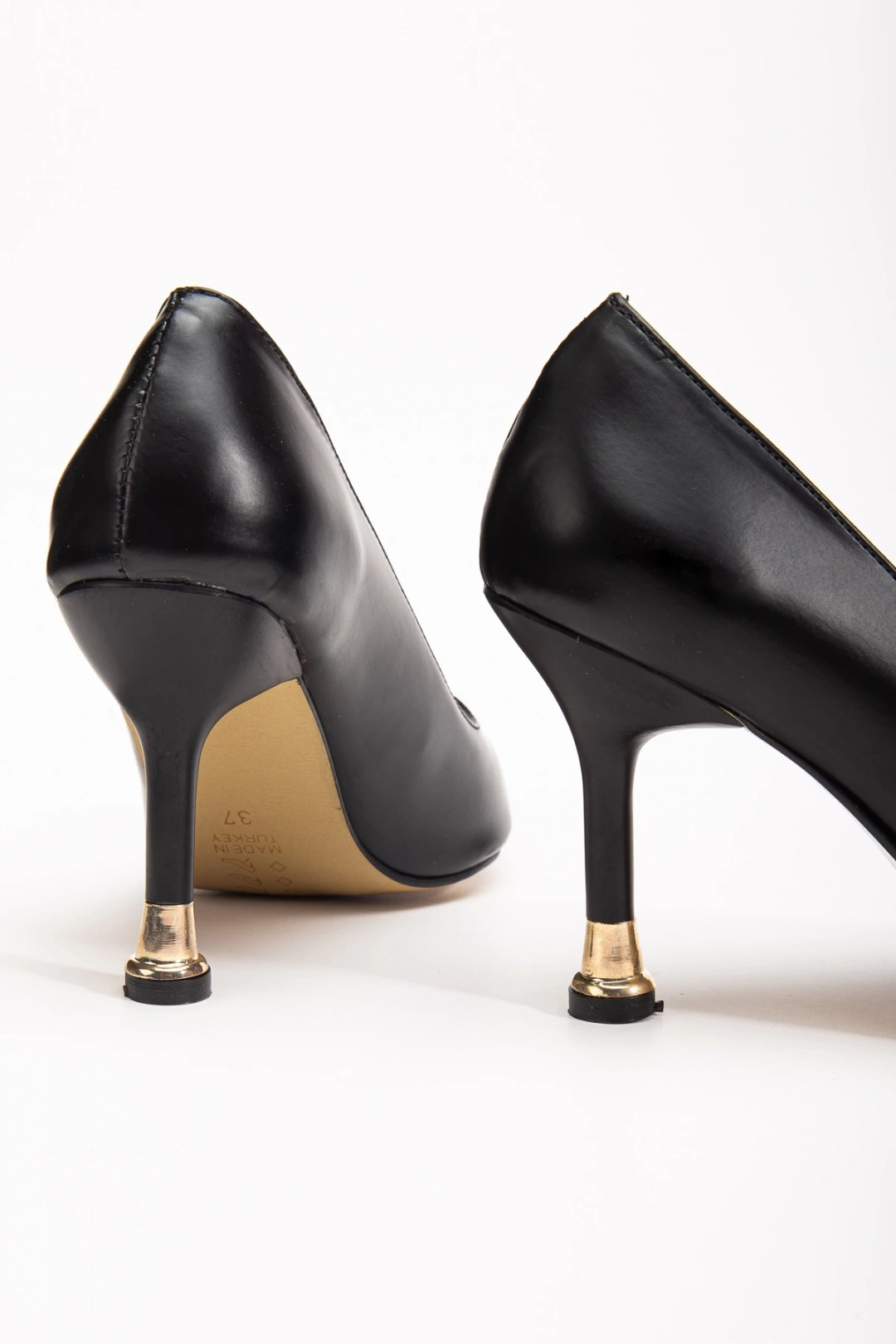 Kadın Siyah Cilt Arkası Kapalı Gold Ökçe Detaylı Topuklu Ayakkabı