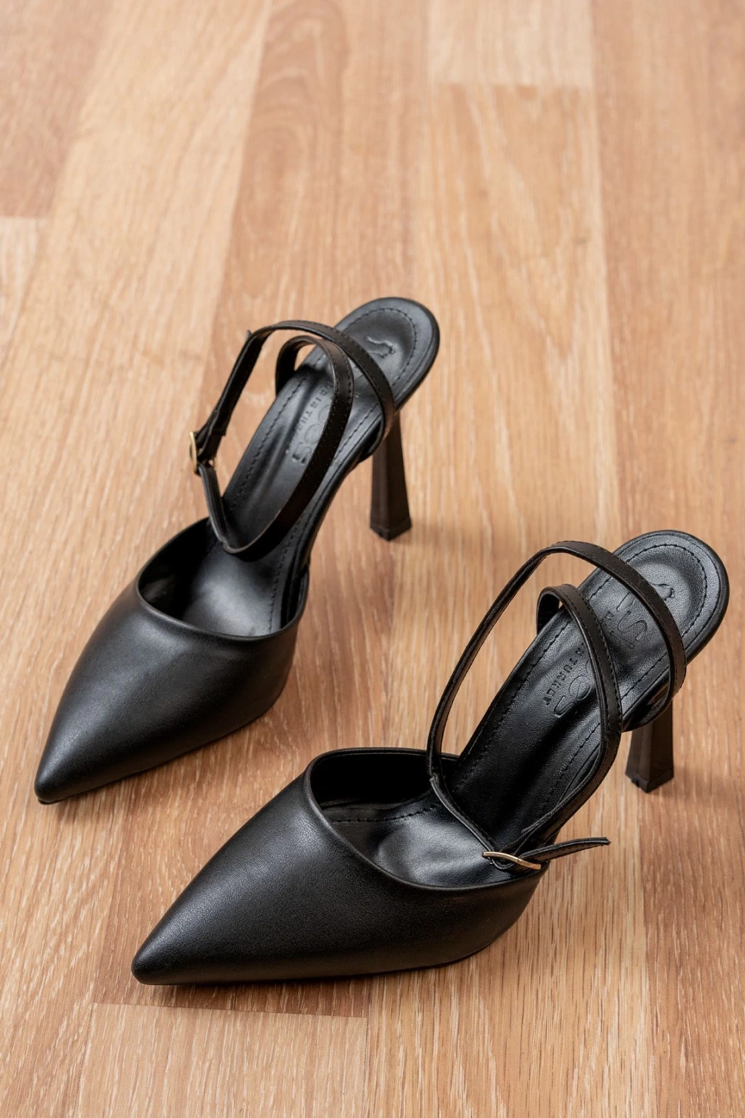 Kadın Siyah Deri Tokalı Sivri Şık Topuklu Stiletto Ayakkabı