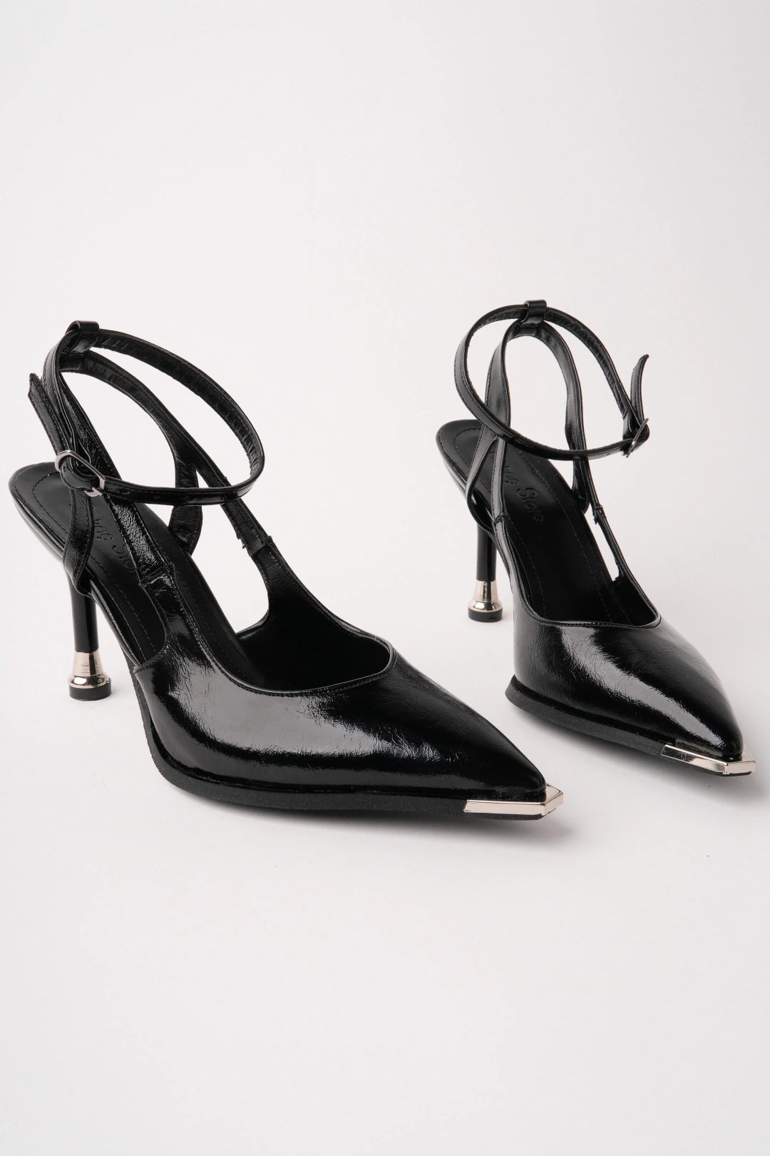 Kadın Siyah Arkası Açık Toka Detaylı Sivri Burun Topuklu Ayakkabı