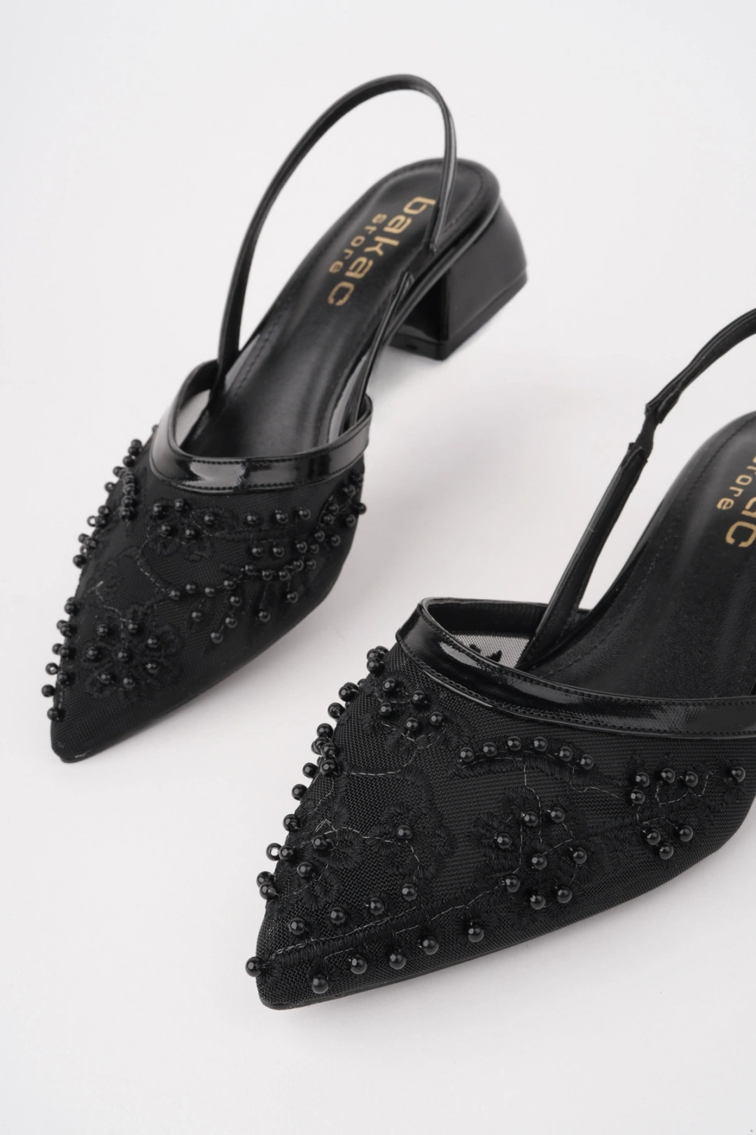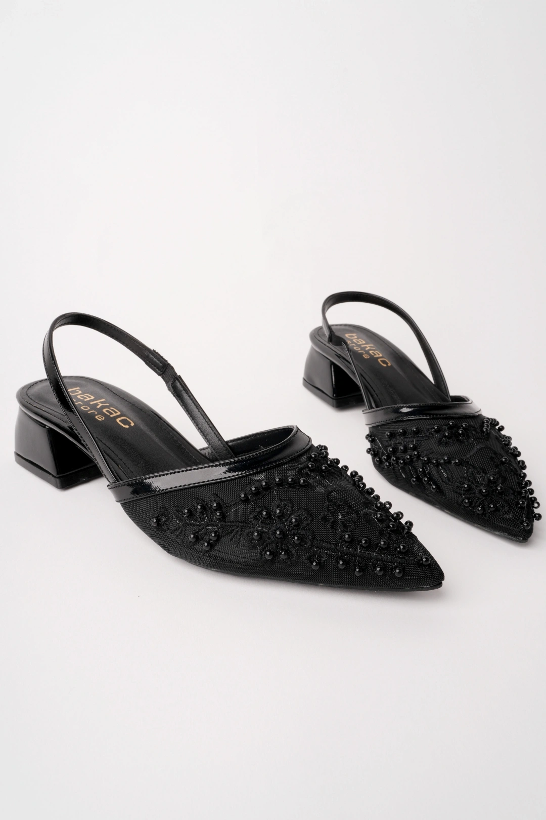 Kadın Siyah Nakışlı Ve Boncuklu Topuklu Ayakkabı