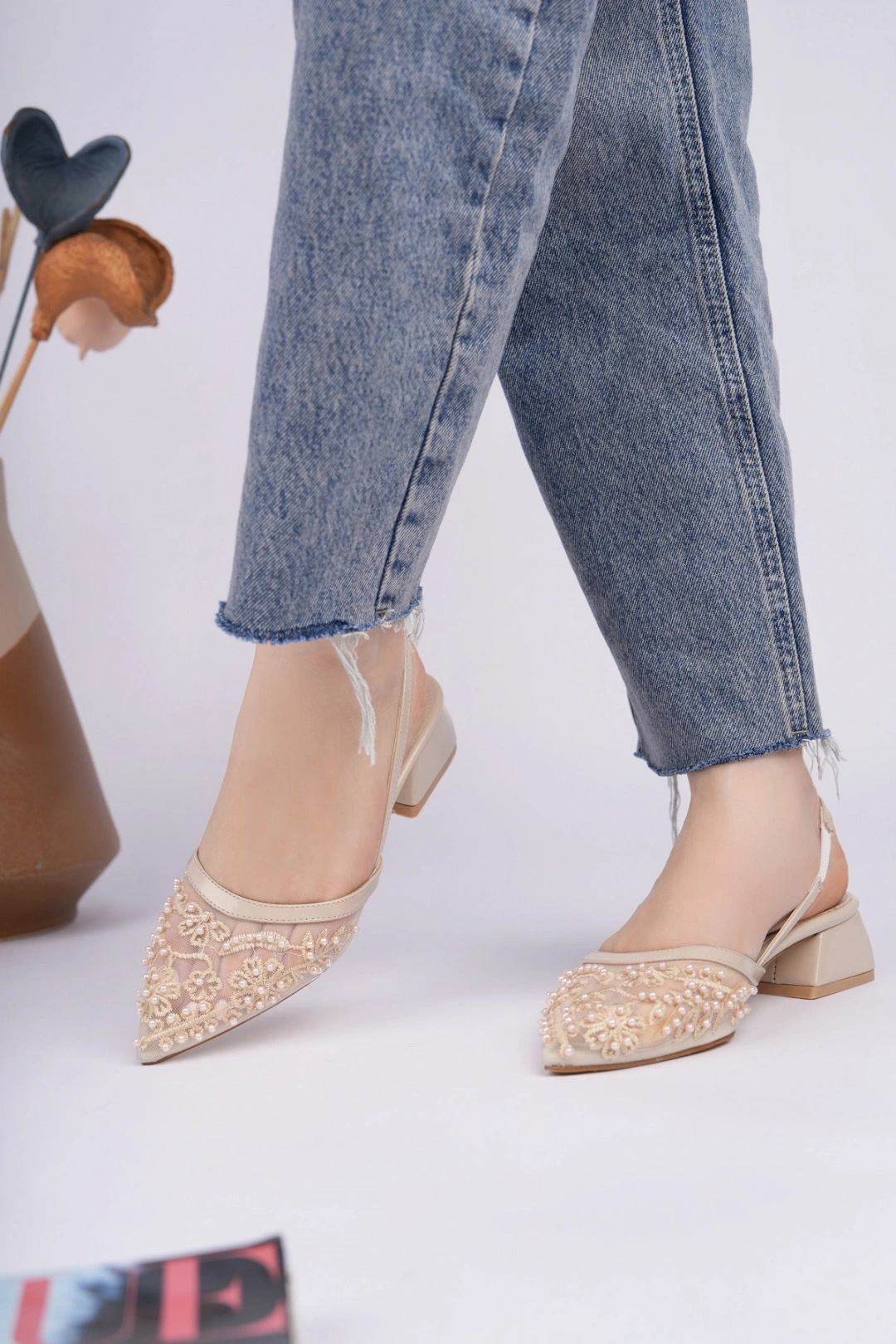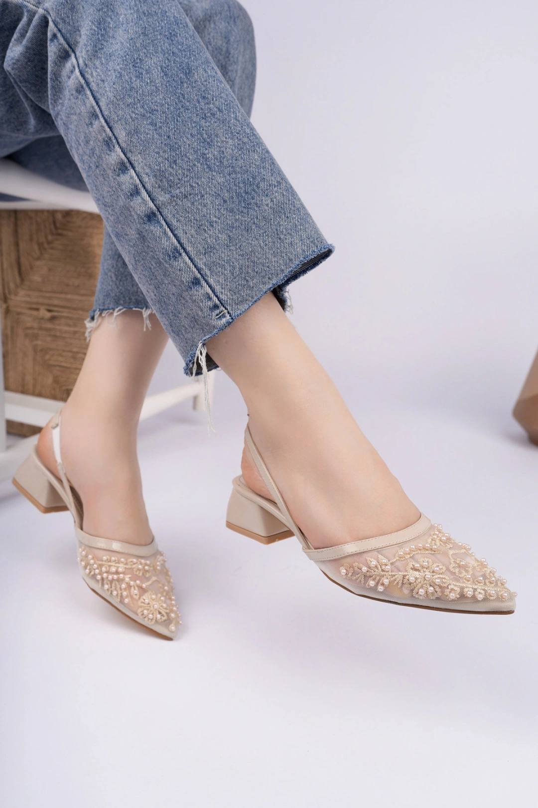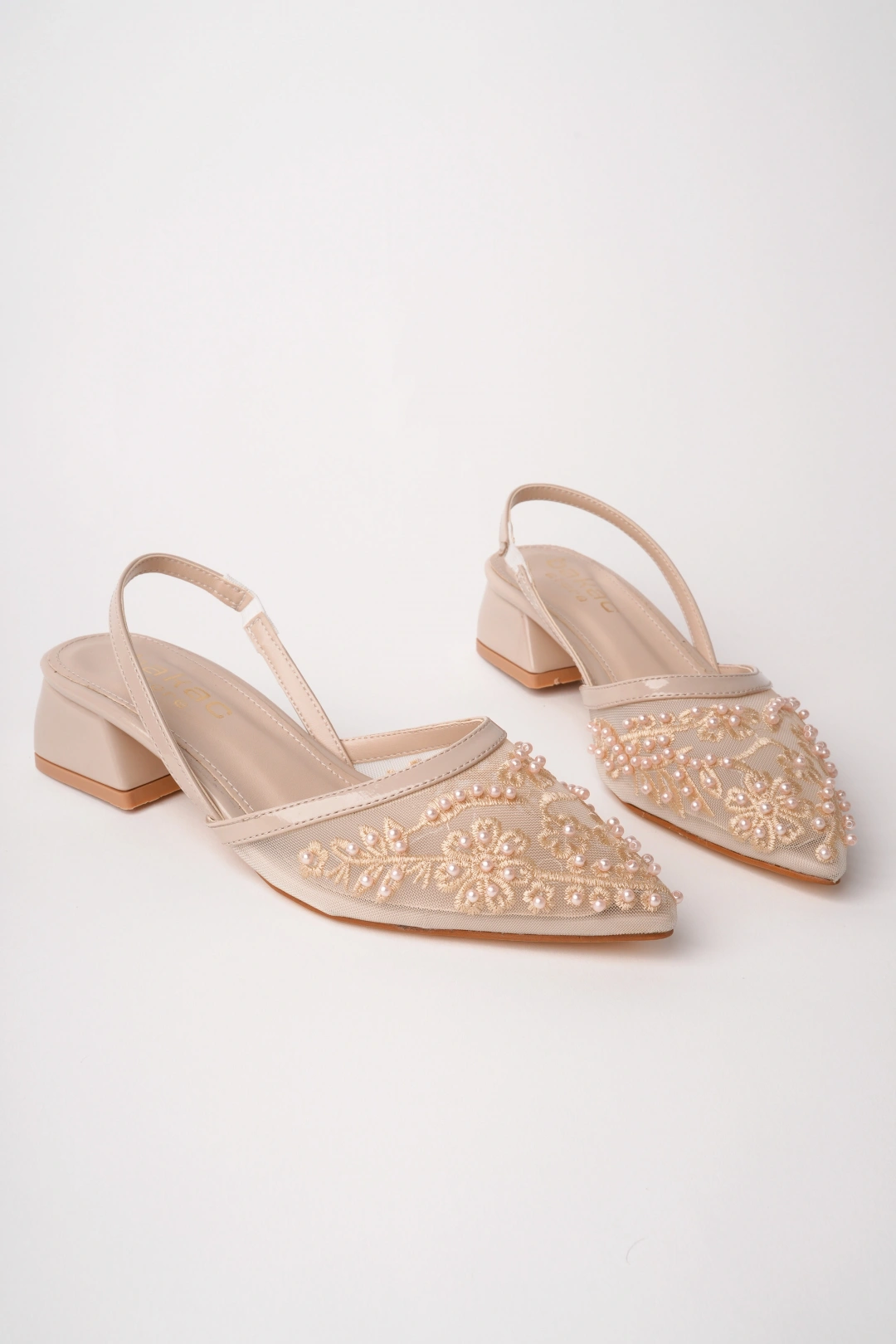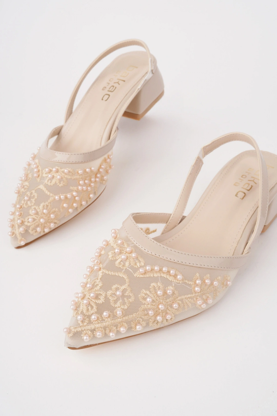 Kadın Bej Nakışlı Ve Boncuklu Topuklu Ayakkabı