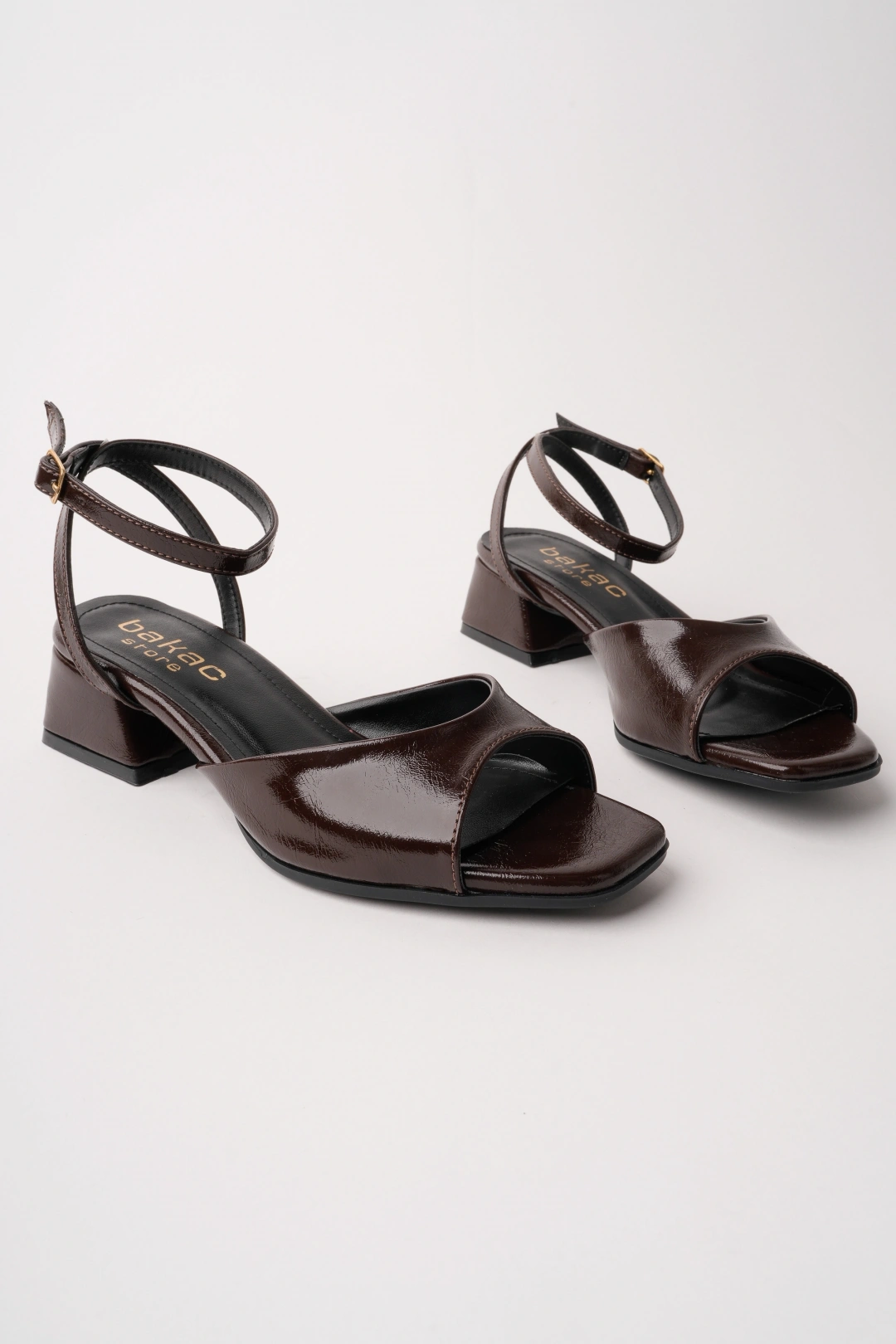 Kadın Kahverengi Kırışık Rugan Çift Biyeli Topuklu Ayakkabı