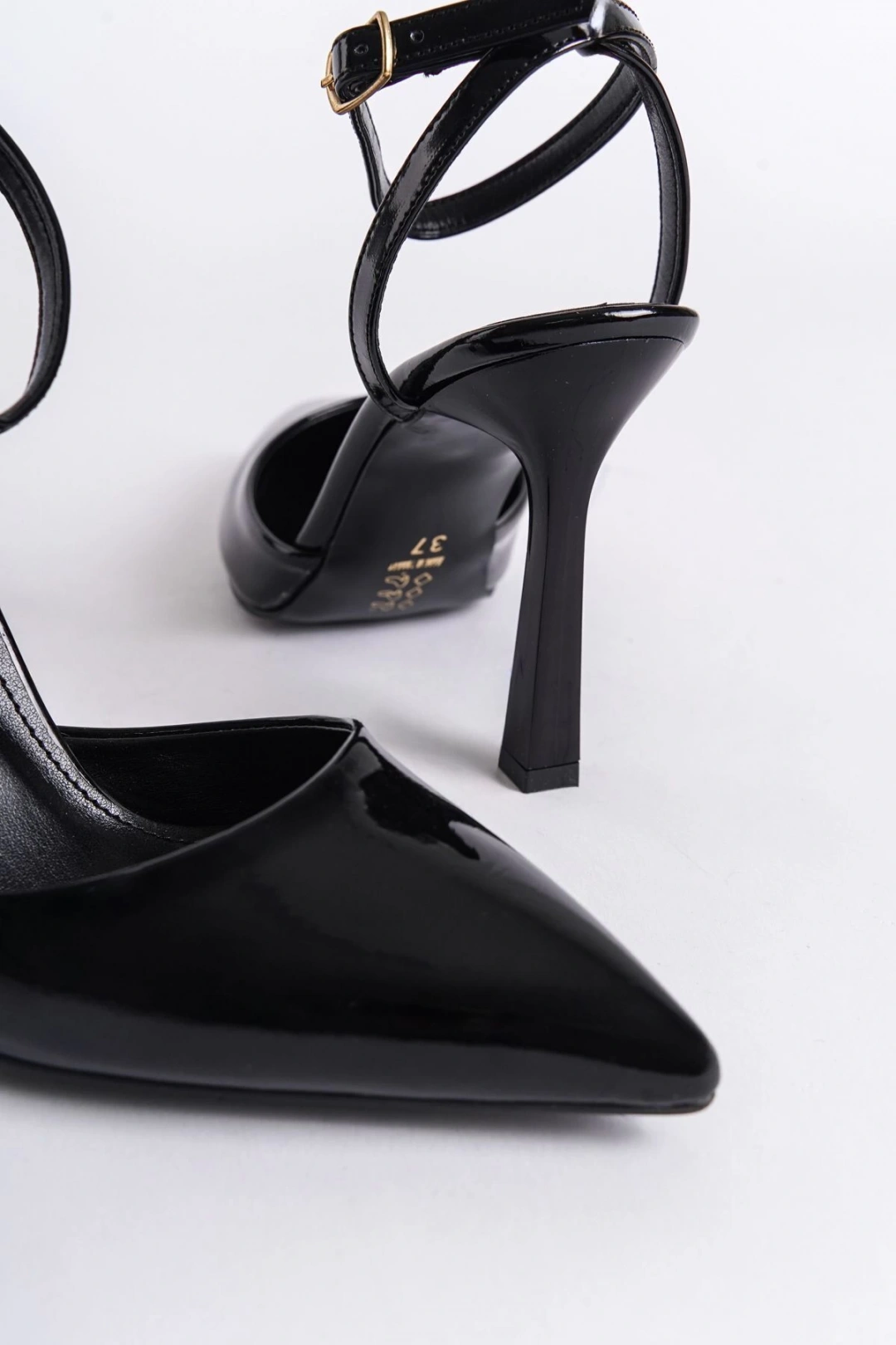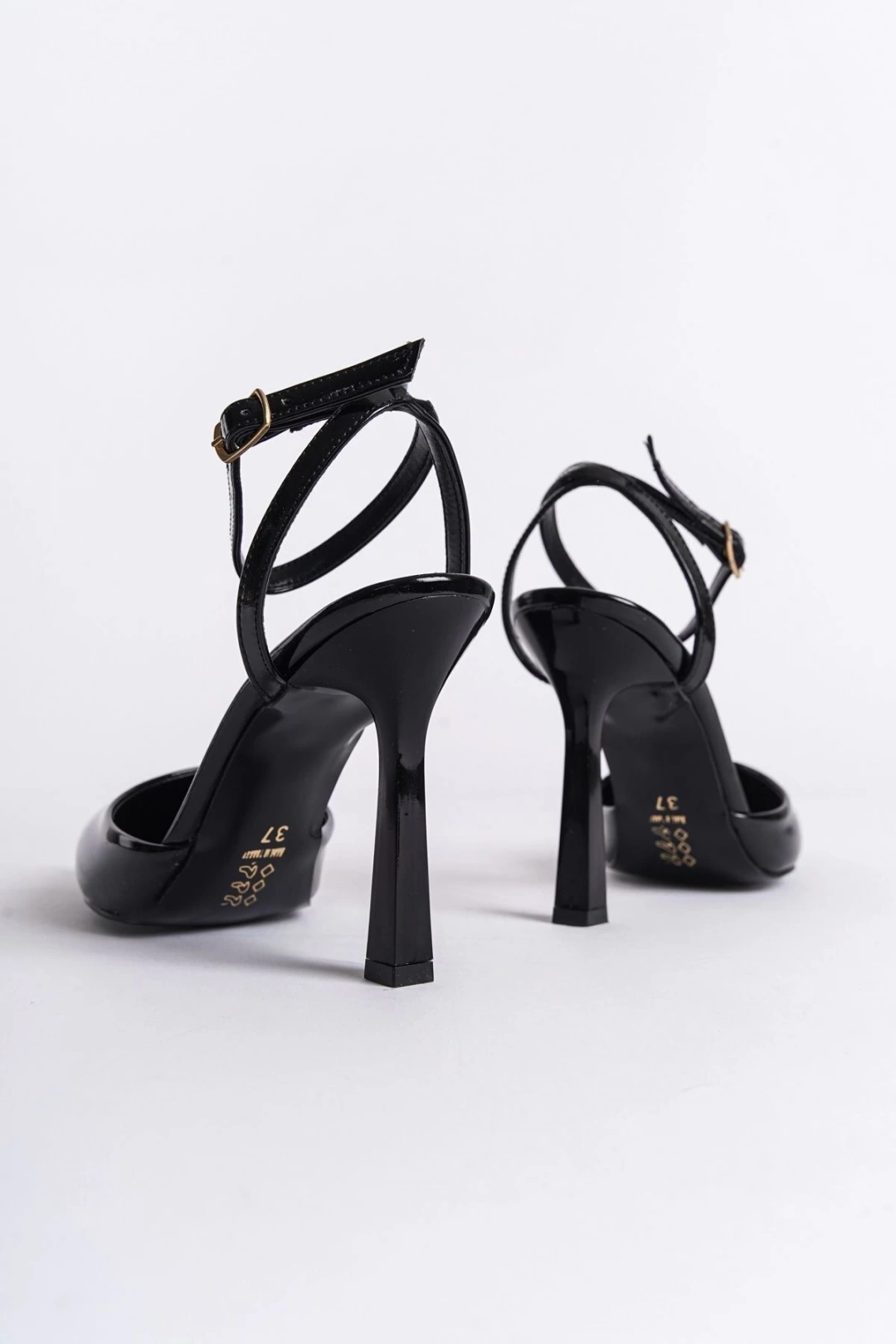 Kadın Siyah Rugan Arkası Bantlı Topuklu Ayakkabı