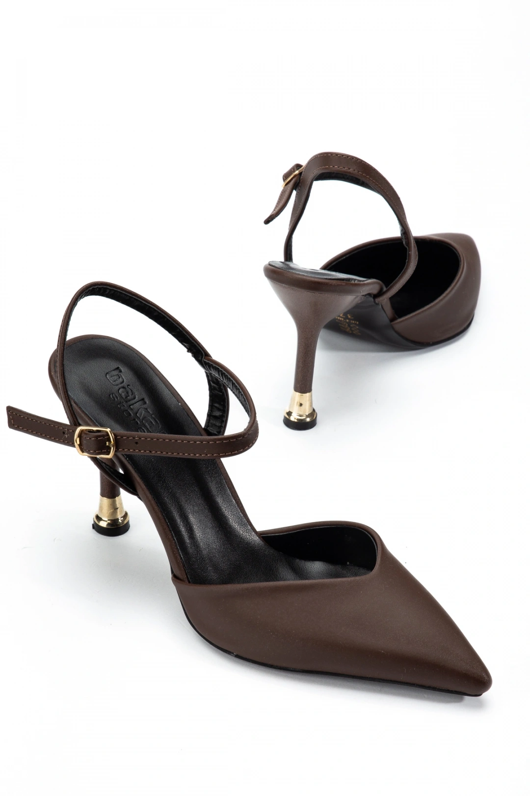 Kadın Kahverengi Arkası Açık Toka Detaylı Sivri Burun Topuklu Ayakkabı