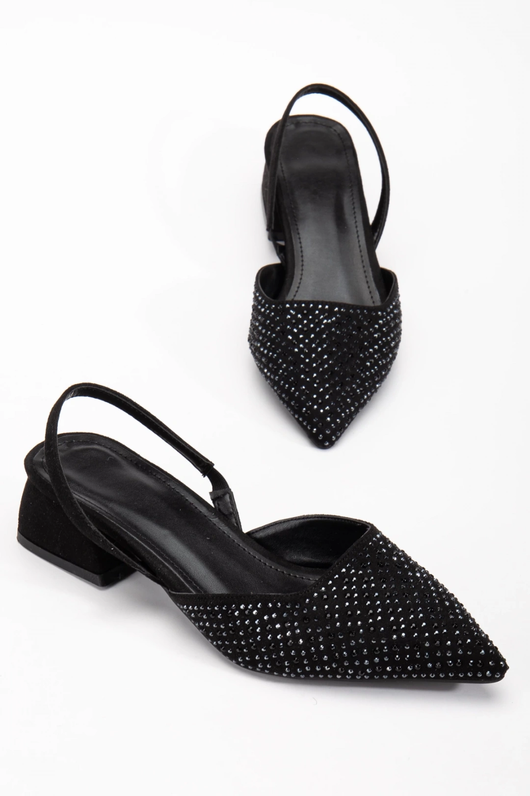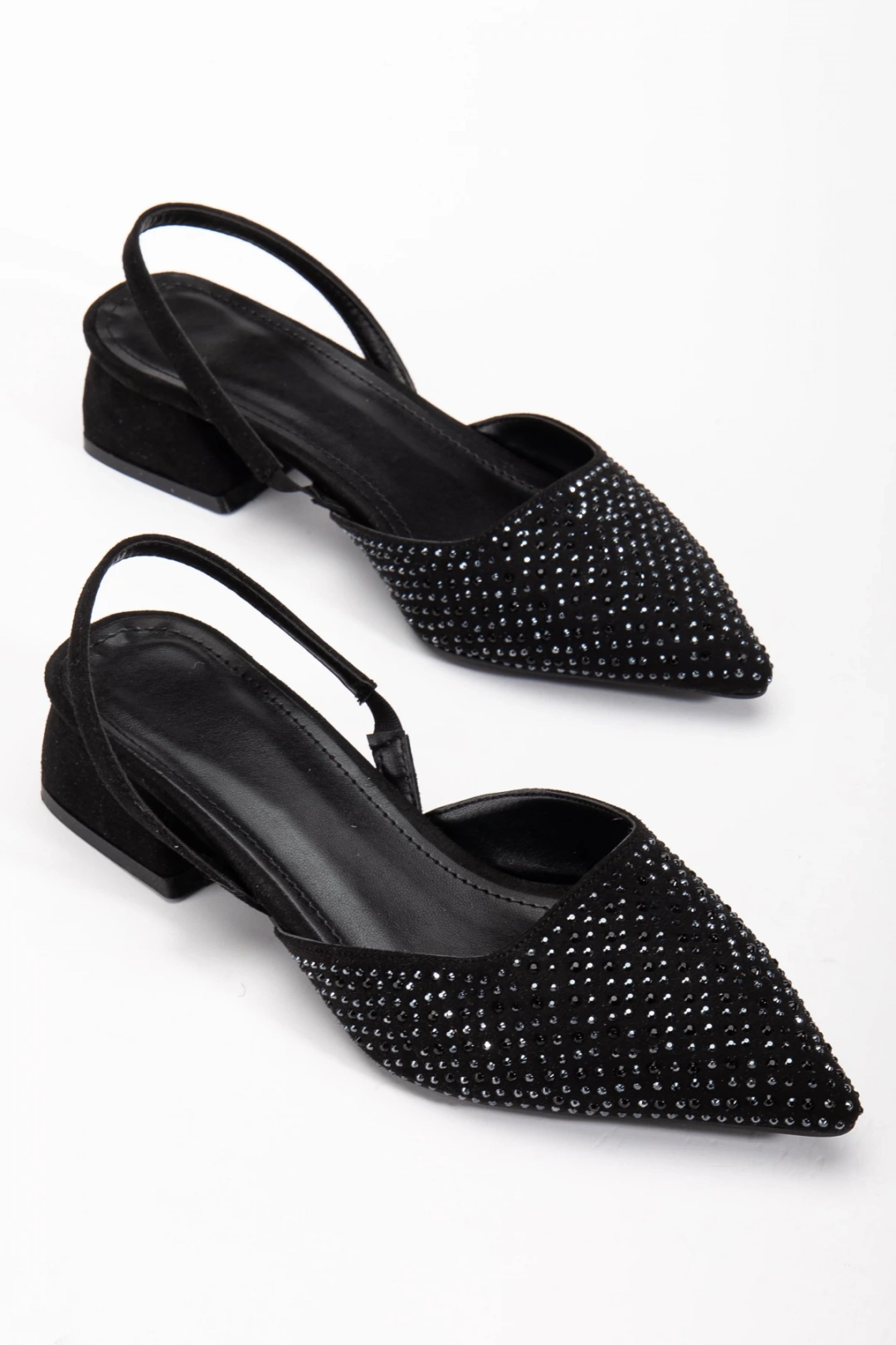 Kadın Siyah Süet Taş Detaylı Sivri Burun Arkası Açık Ayakkabı