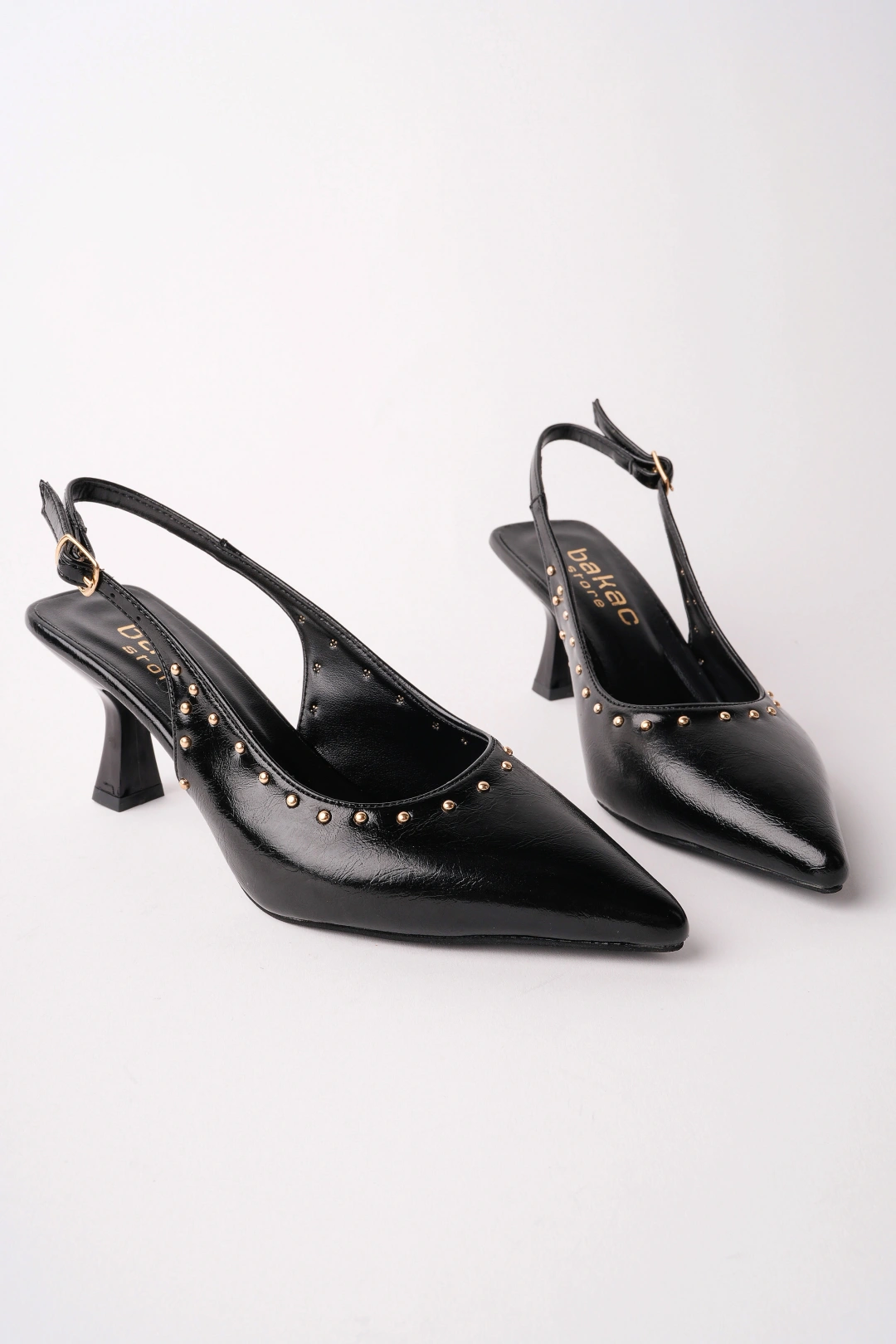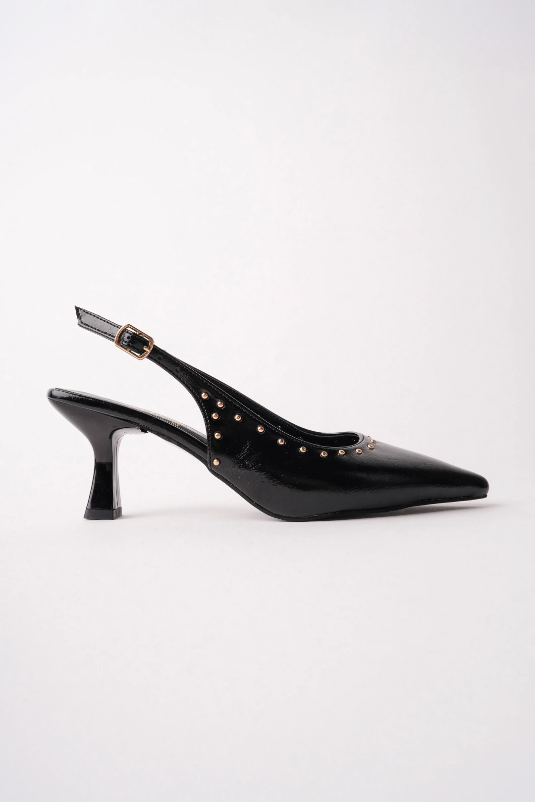 Kadın Siyah Zımba Detaylı Sivri Burun Topuklu Ayakkabı