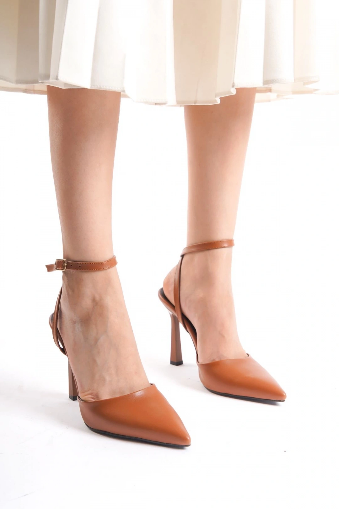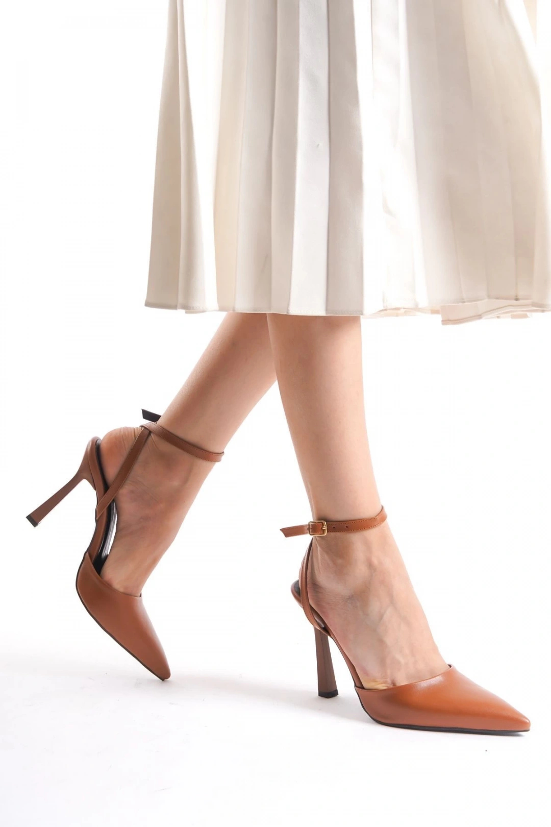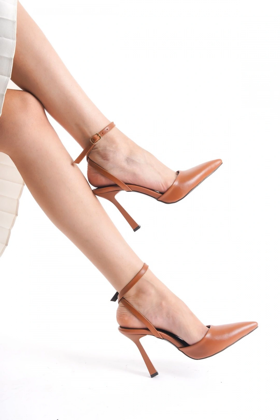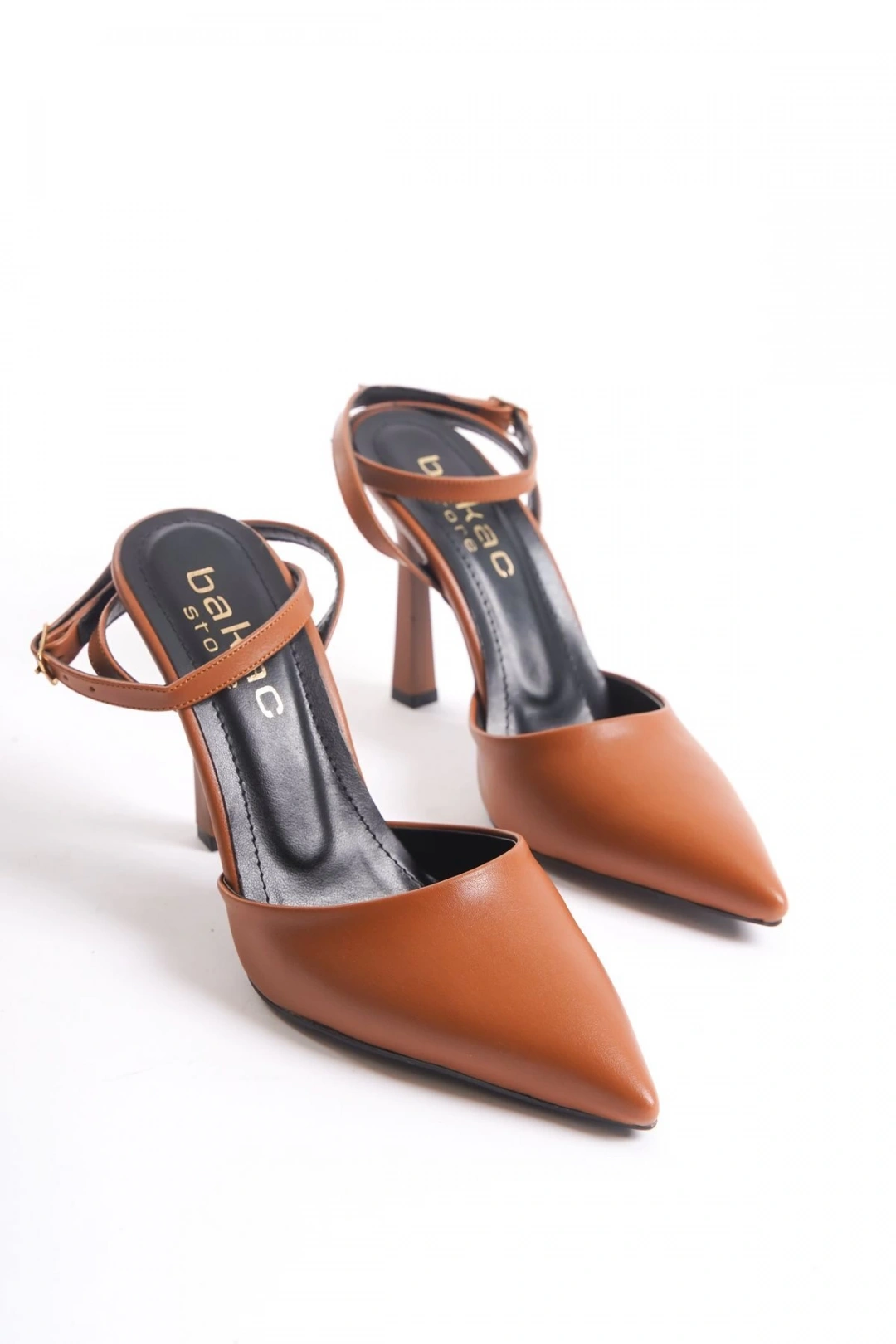 Kadın Taba Cilt Arkası Bantlı Topuklu Ayakkabı
