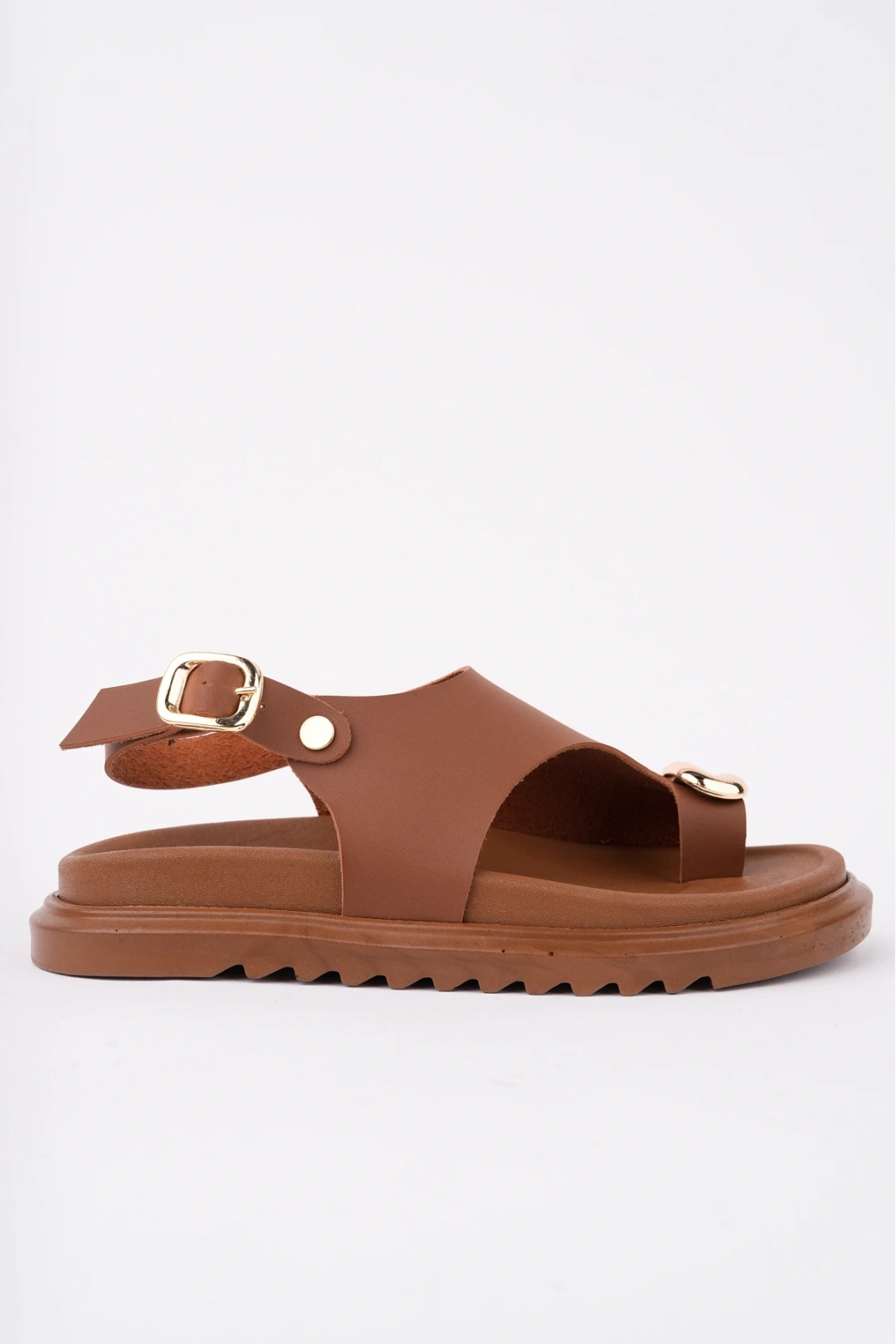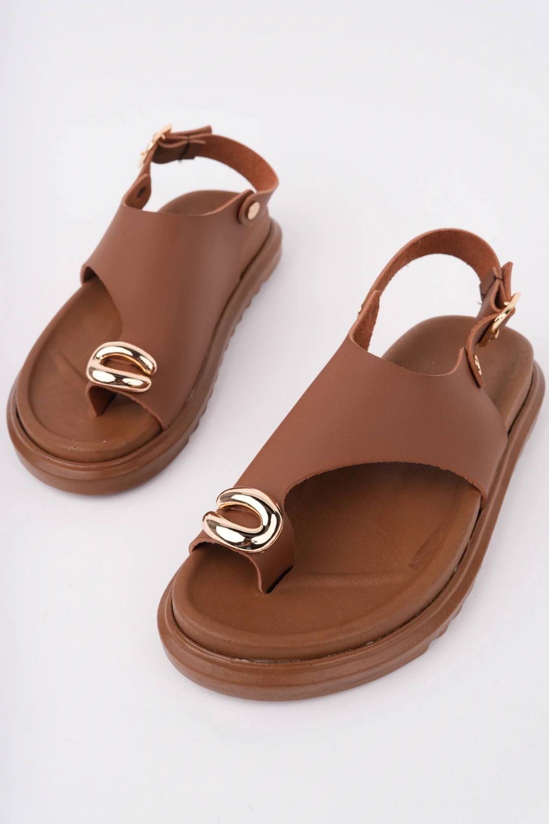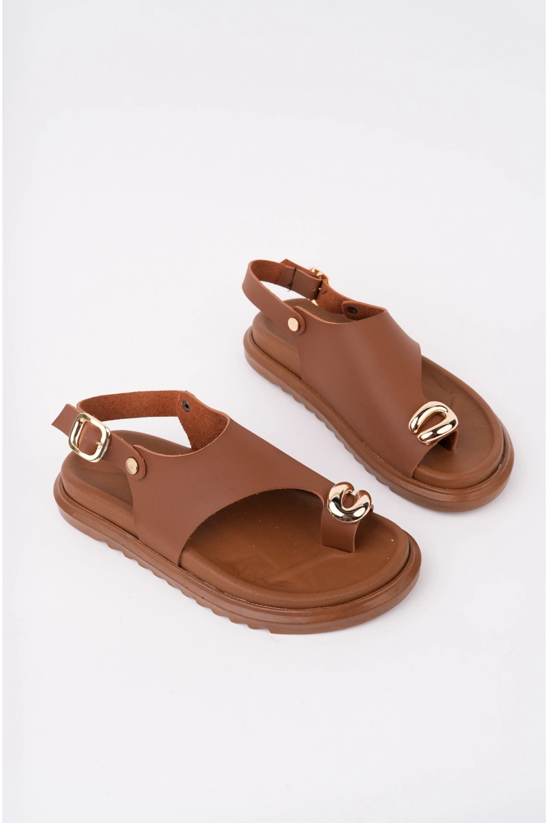 Kadın Taba Deri Günlük Gold Yüzük Parmak Arası Sandalet