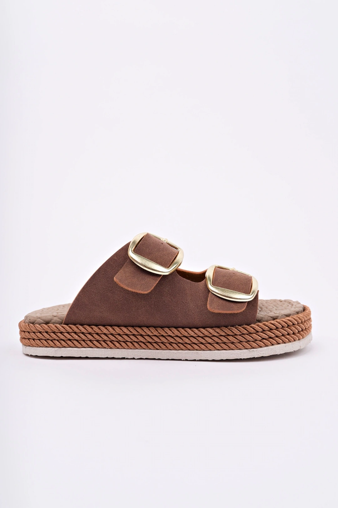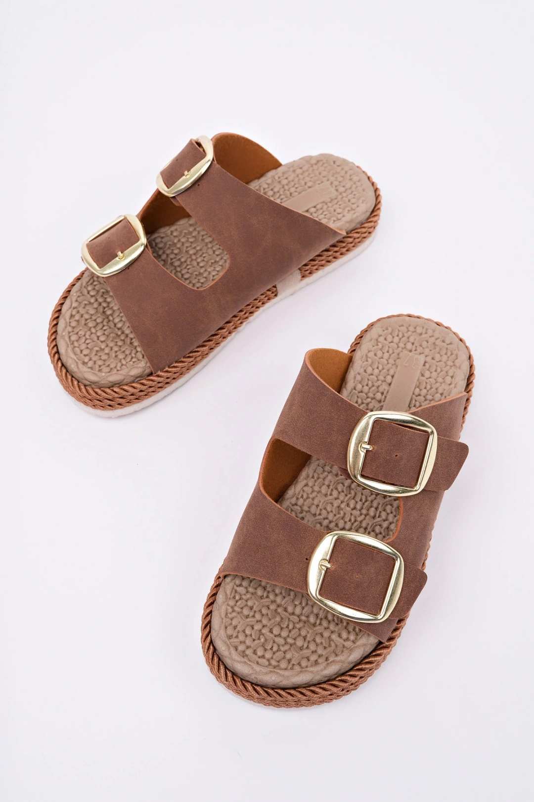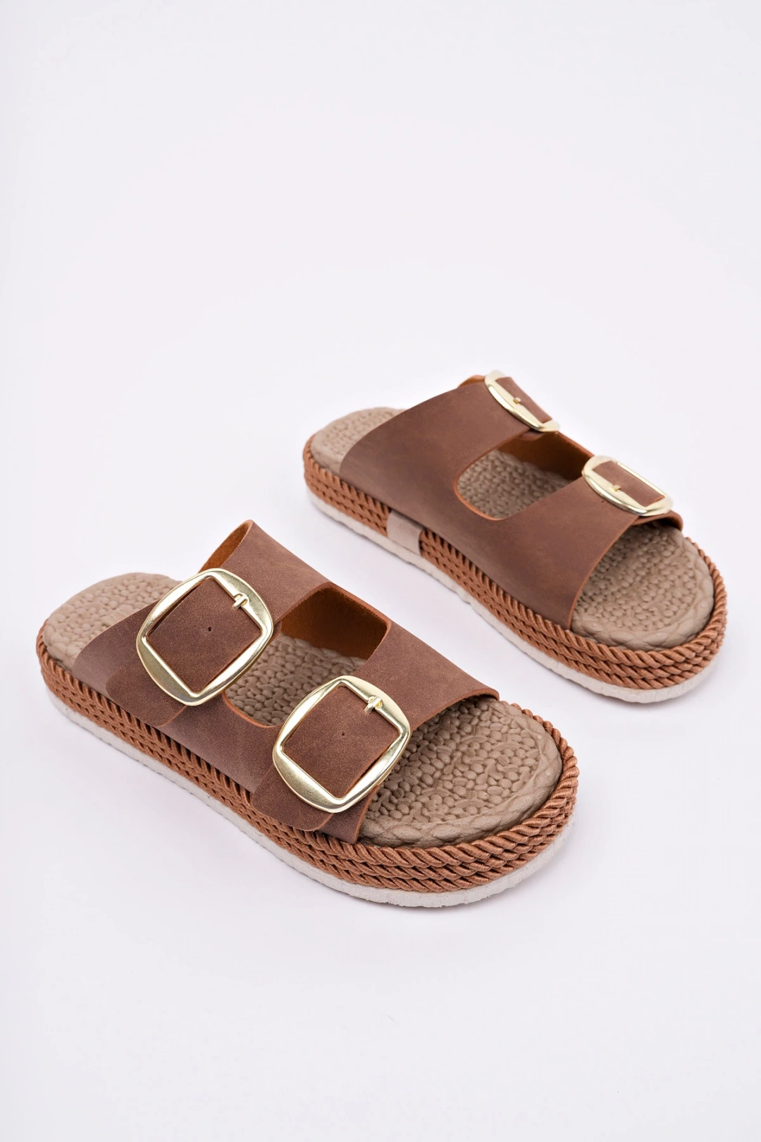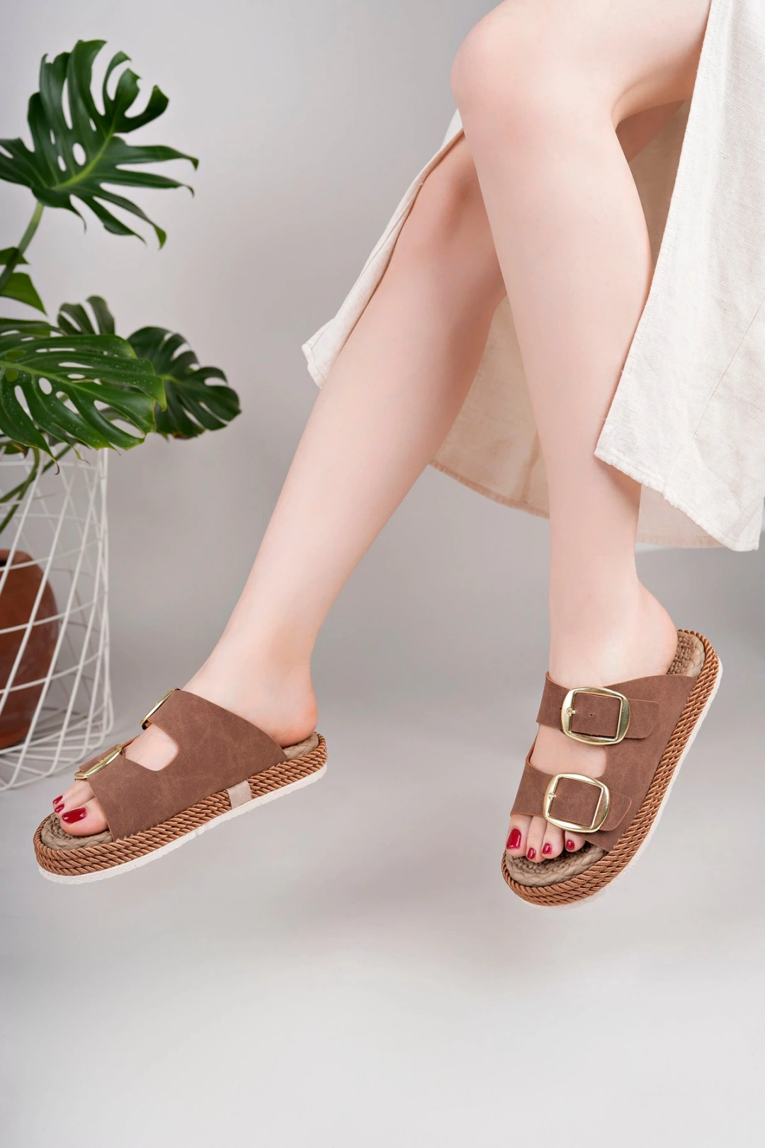 Kadın Taba Günlük Çift Tokalı Rahat Taban Hasır Sandalet Terlik