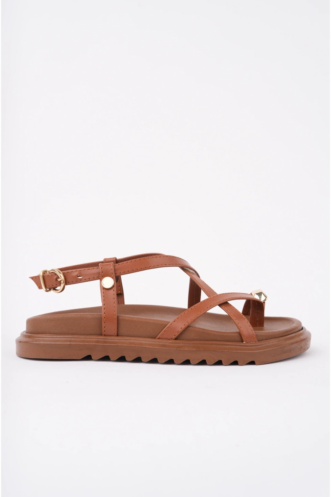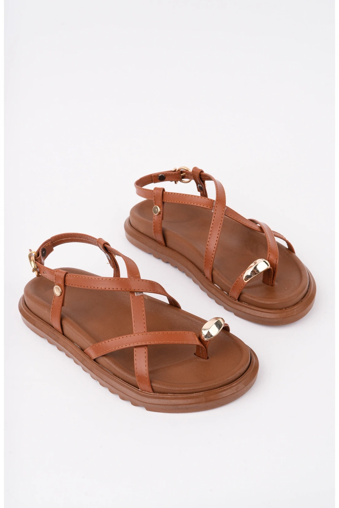 Kadın Taba Deri Günlük Gold Yüzük Parmak Arası Sandalet