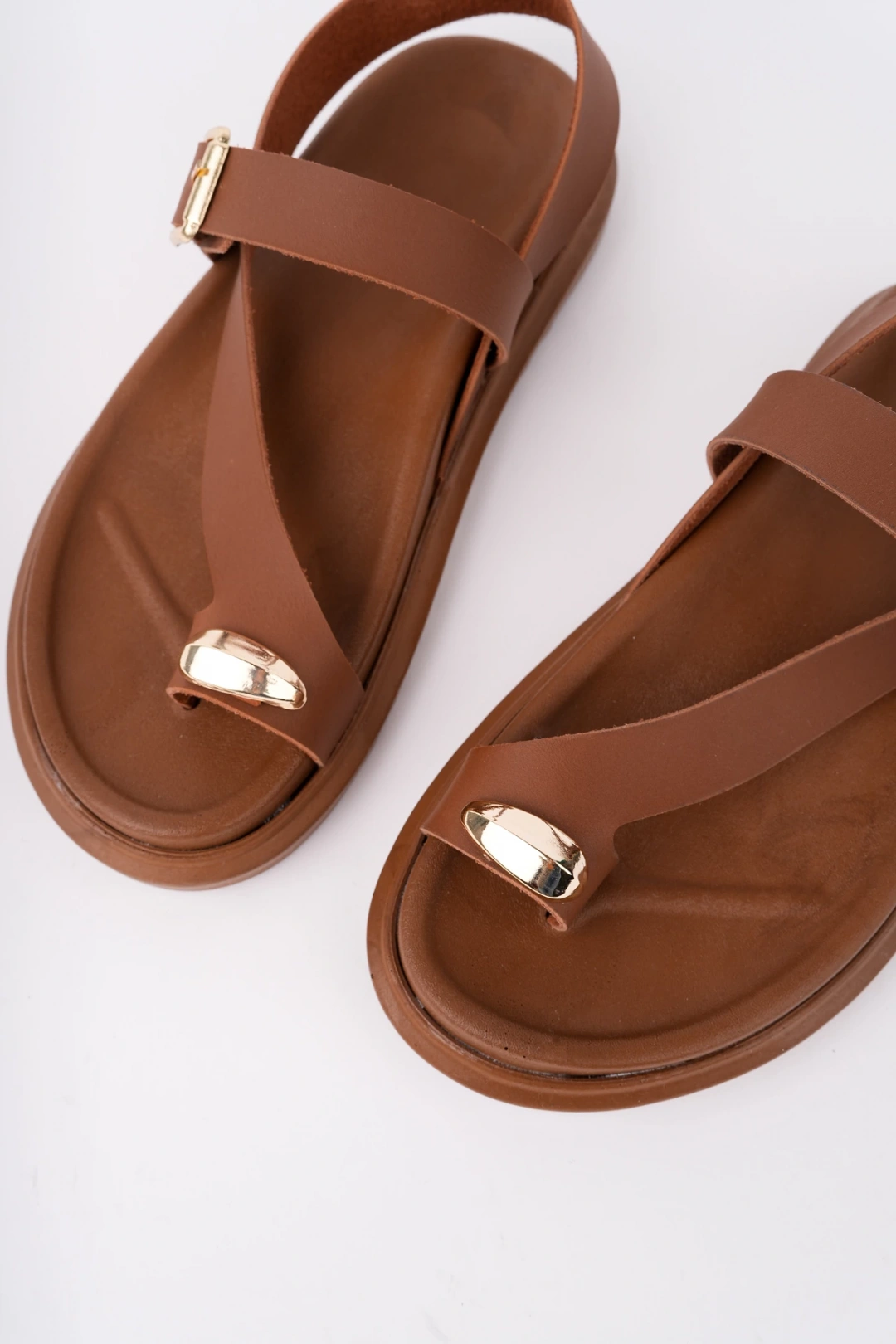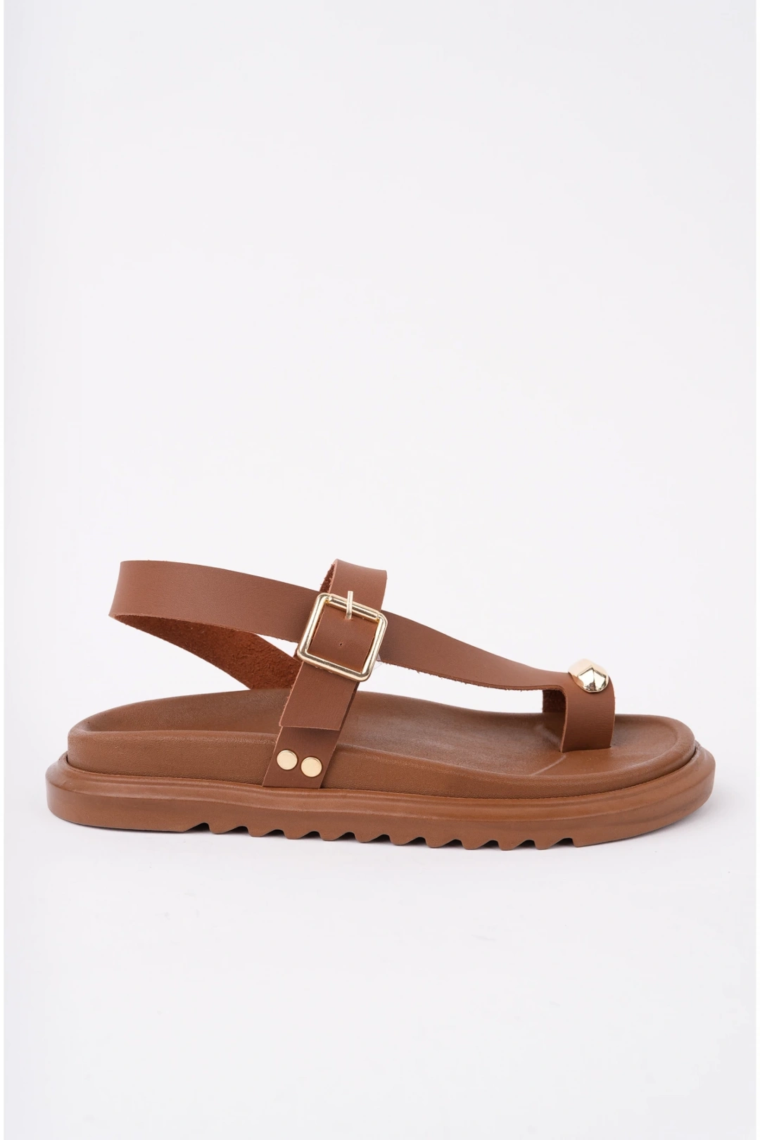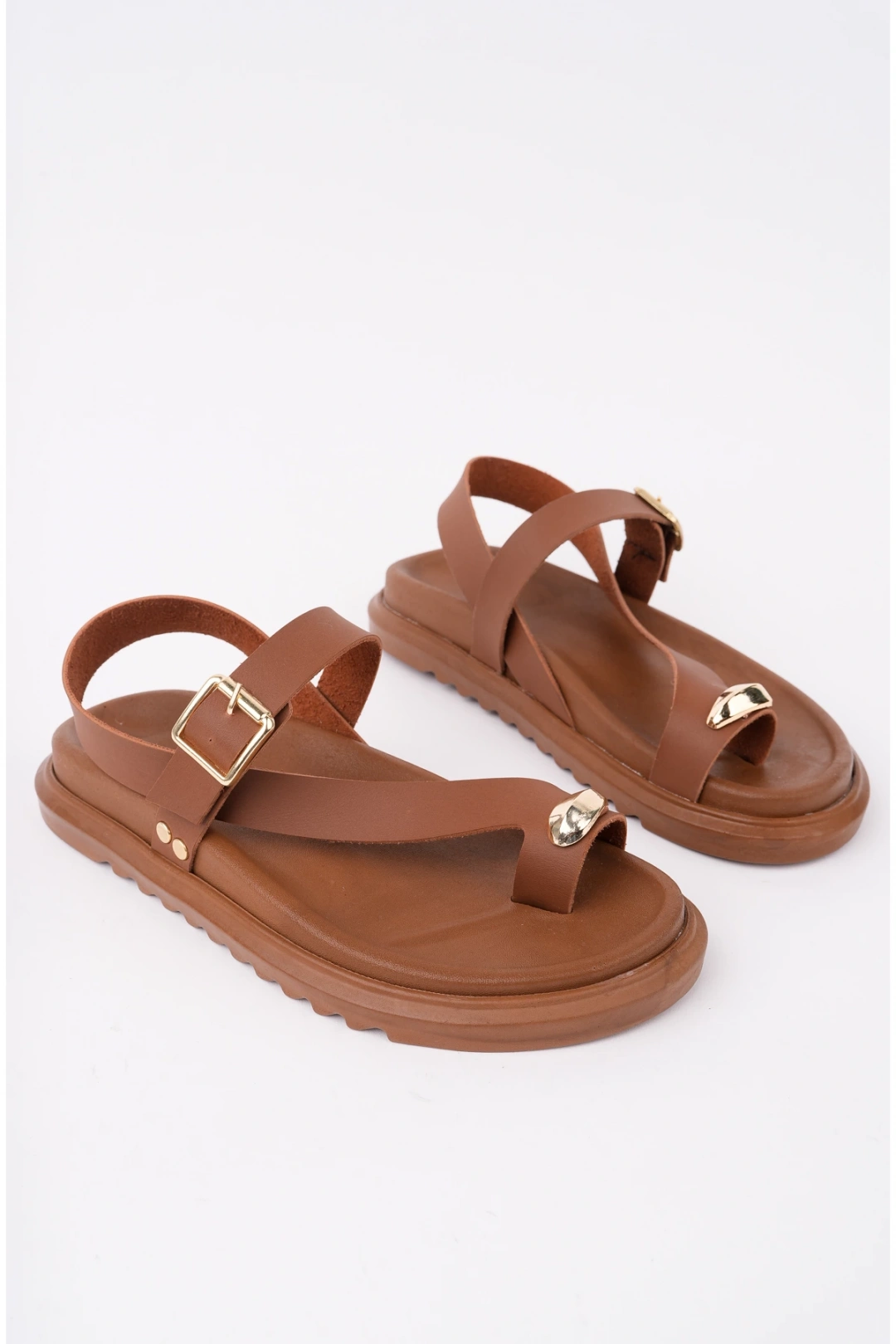 Kadın Taba Deri Günlük Gold Yüzük Parmak Arası Sandalet
