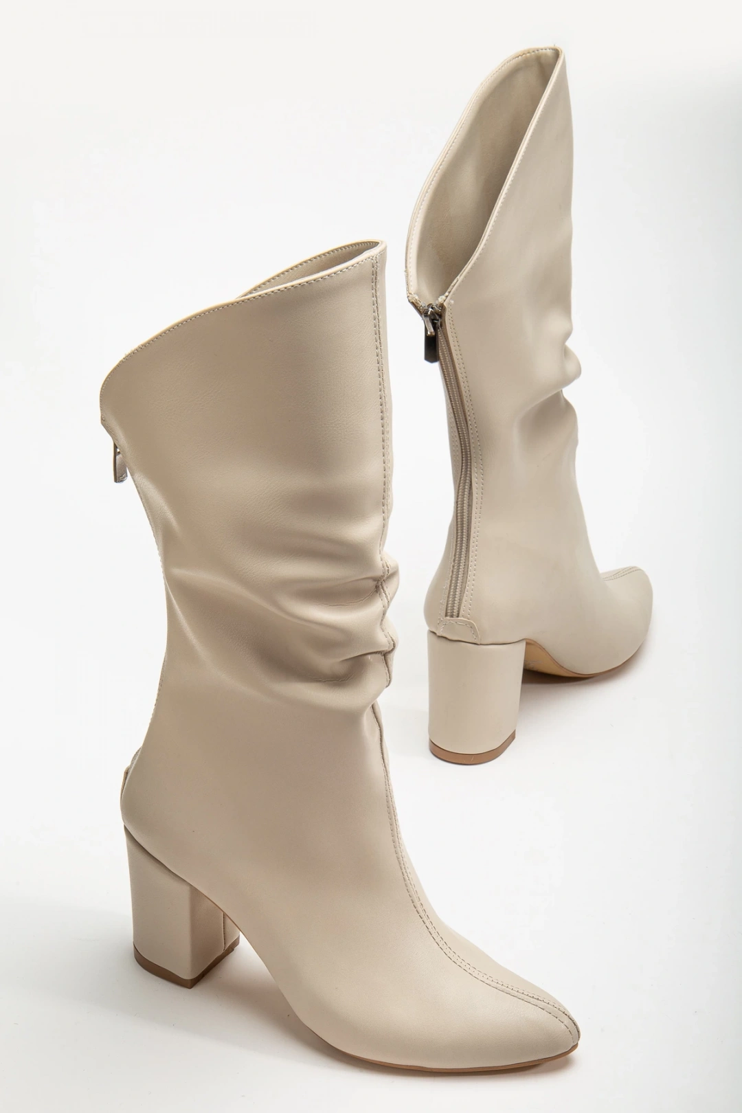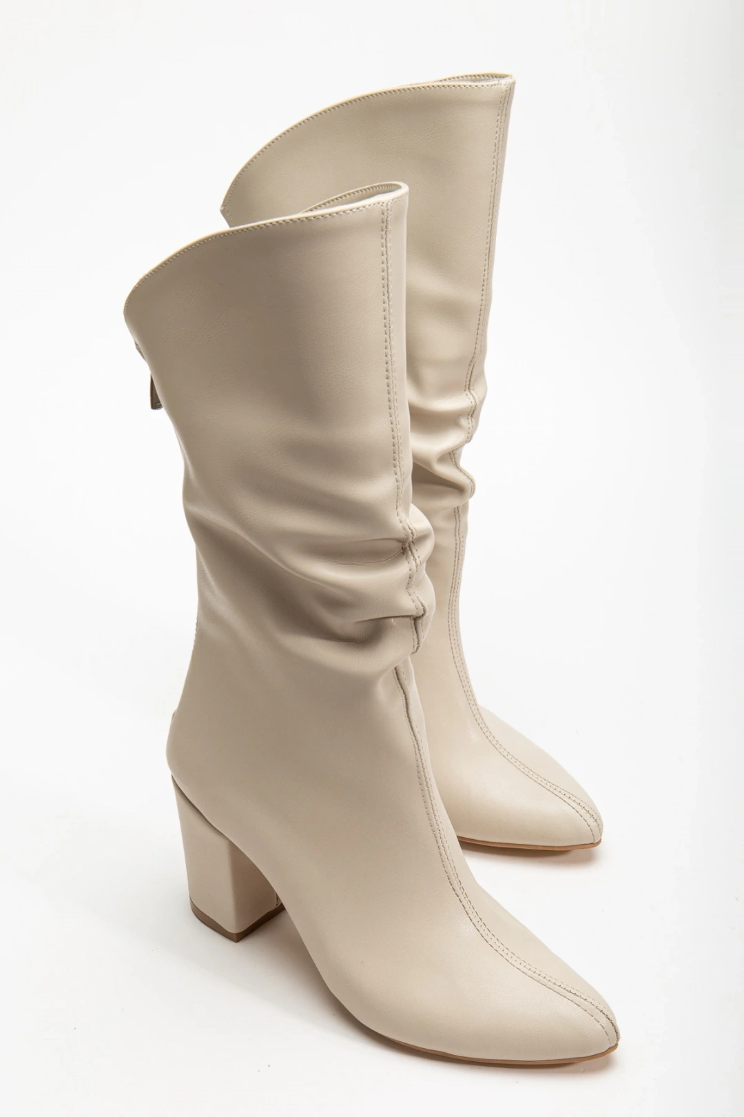 Liora Kadın Bej Arkası Fermuarlı Sivri Burun Büzgülü Çizme