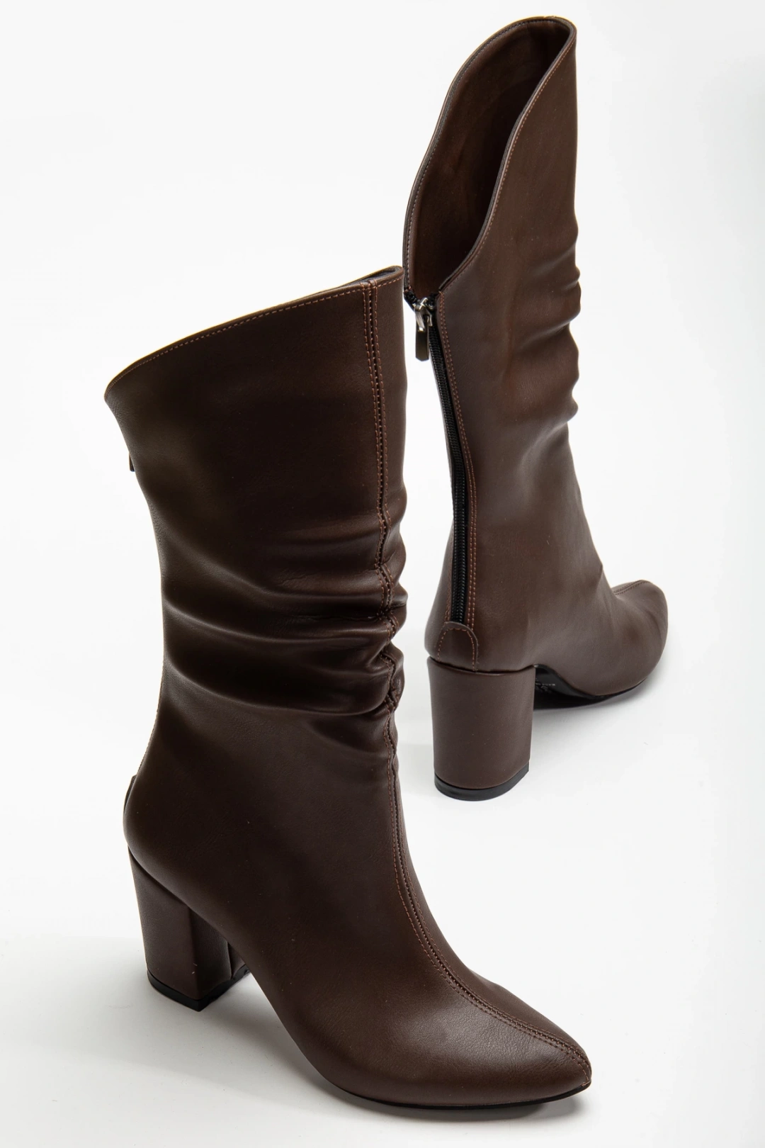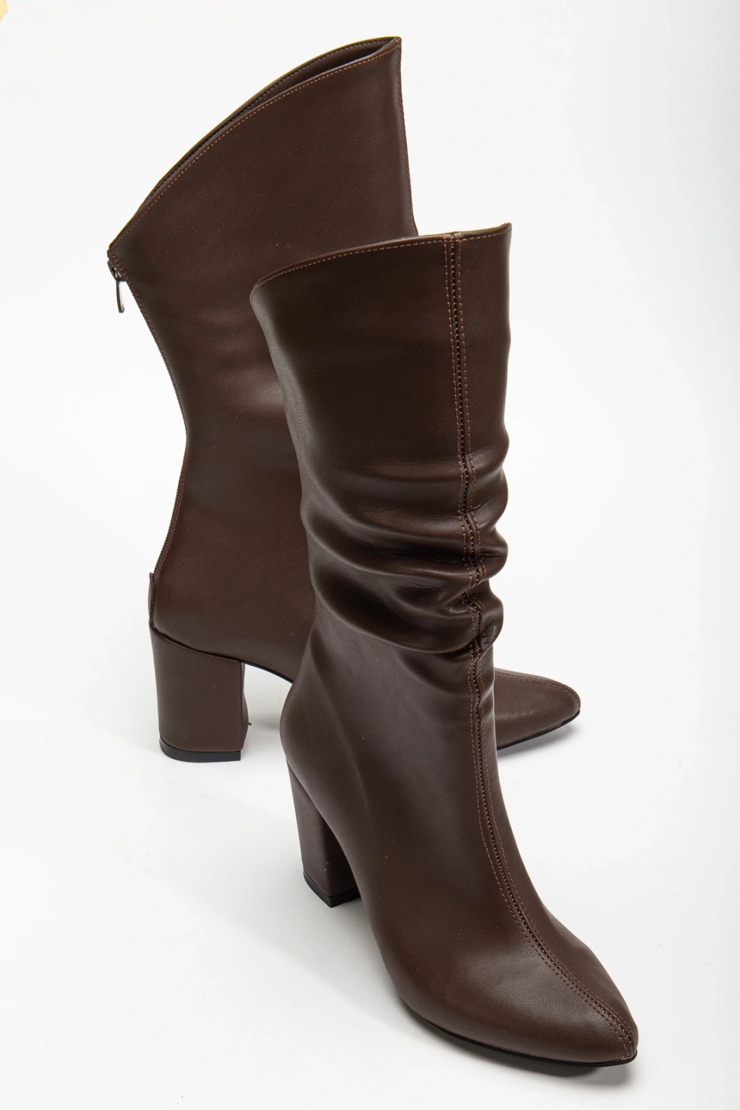 Liora Kadın Kahverengi Arkası Fermuarlı Sivri Burun Büzgülü Çizme