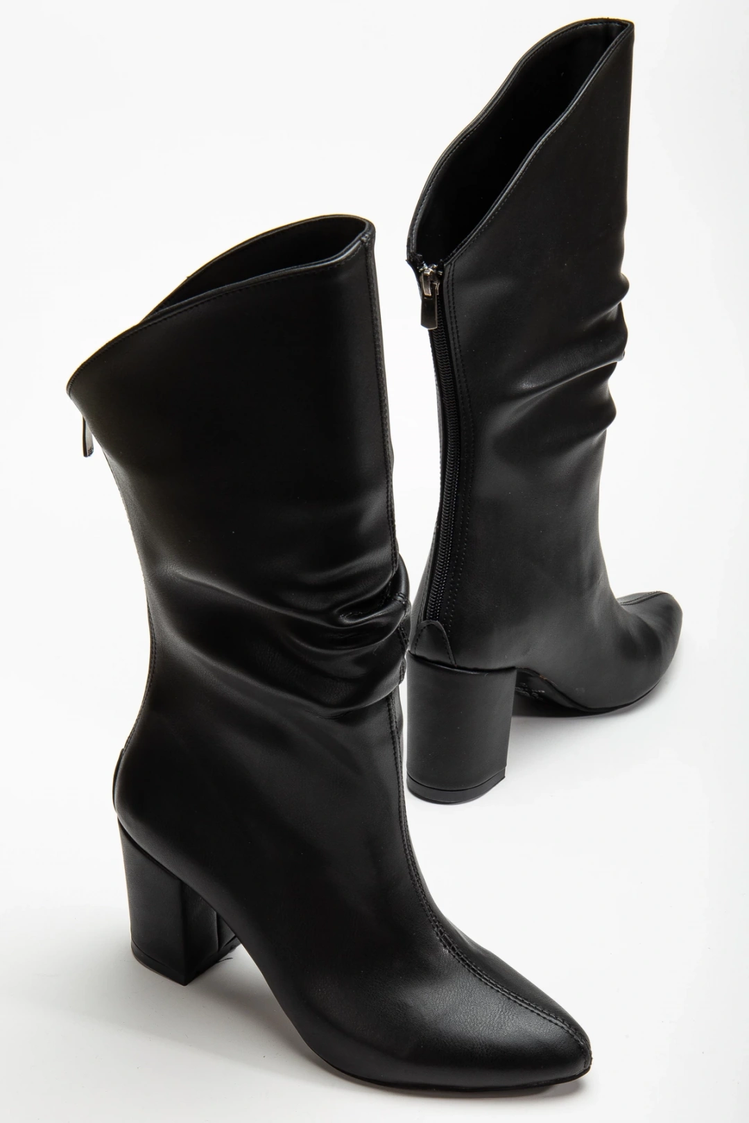 Liora Kadın Siyah Arkası Fermuarlı Sivri Burun Büzgülü Çizme