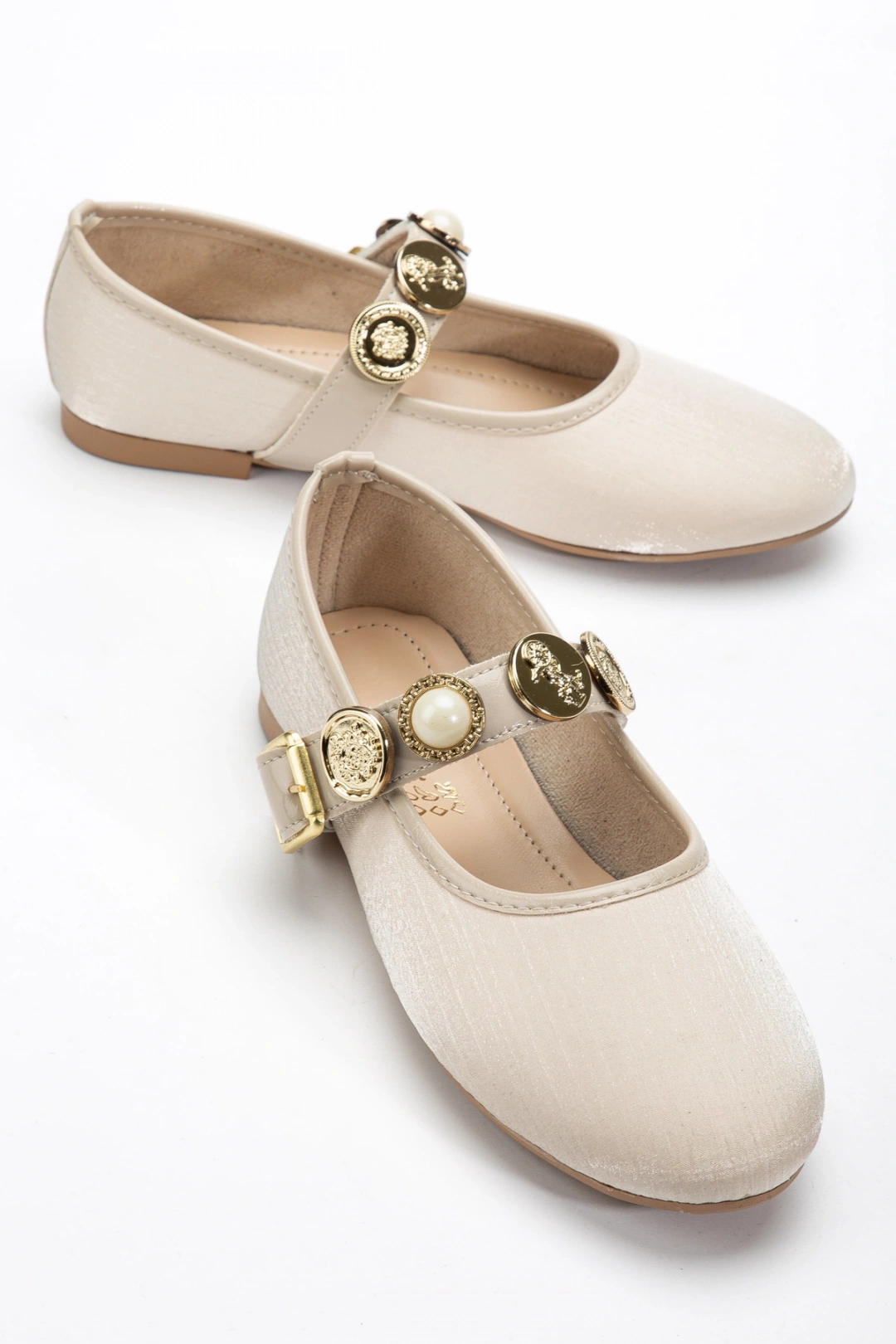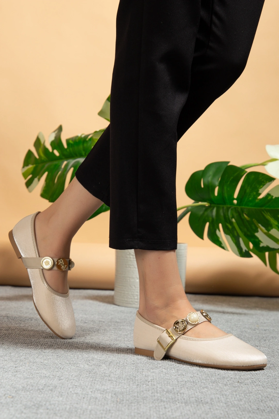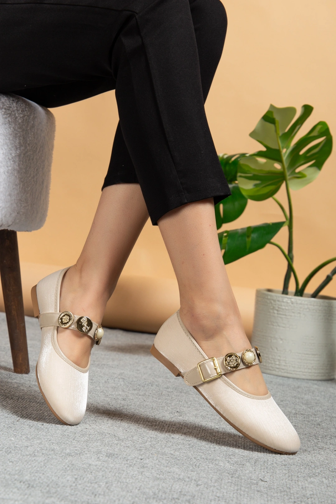 Kadın bej Parlak Kumaş Detaylı Şık Babet