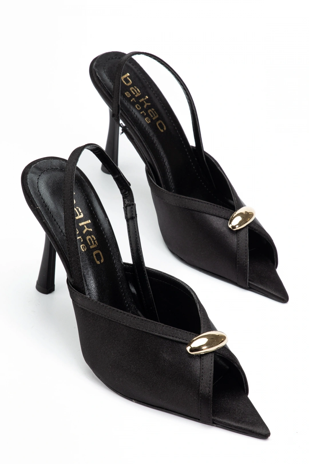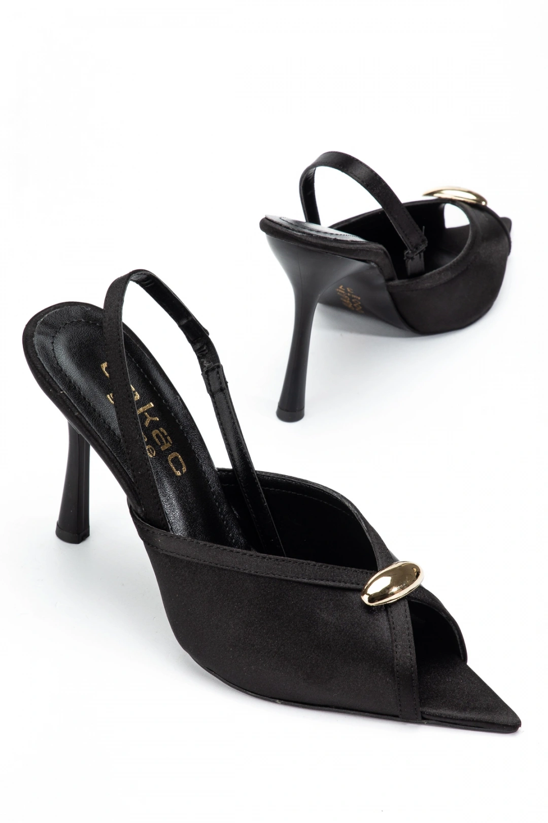 Kadın Saten Siyah Toka Detaylı Sivri Burun Topuklu Ayakkabı