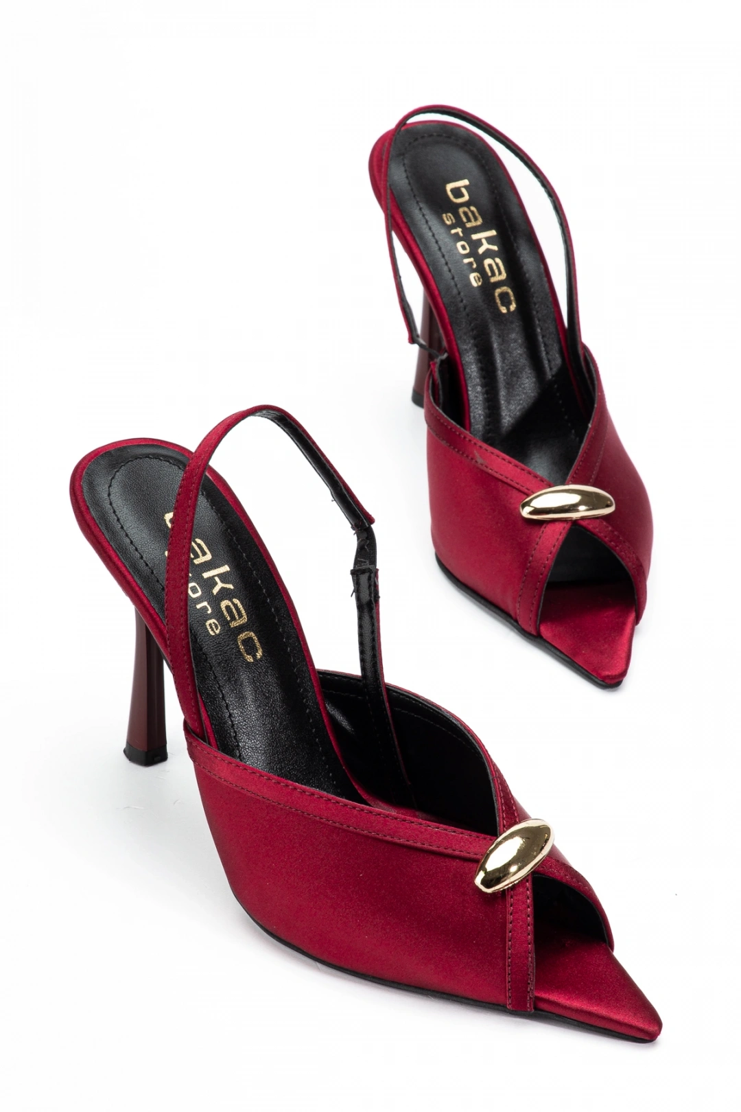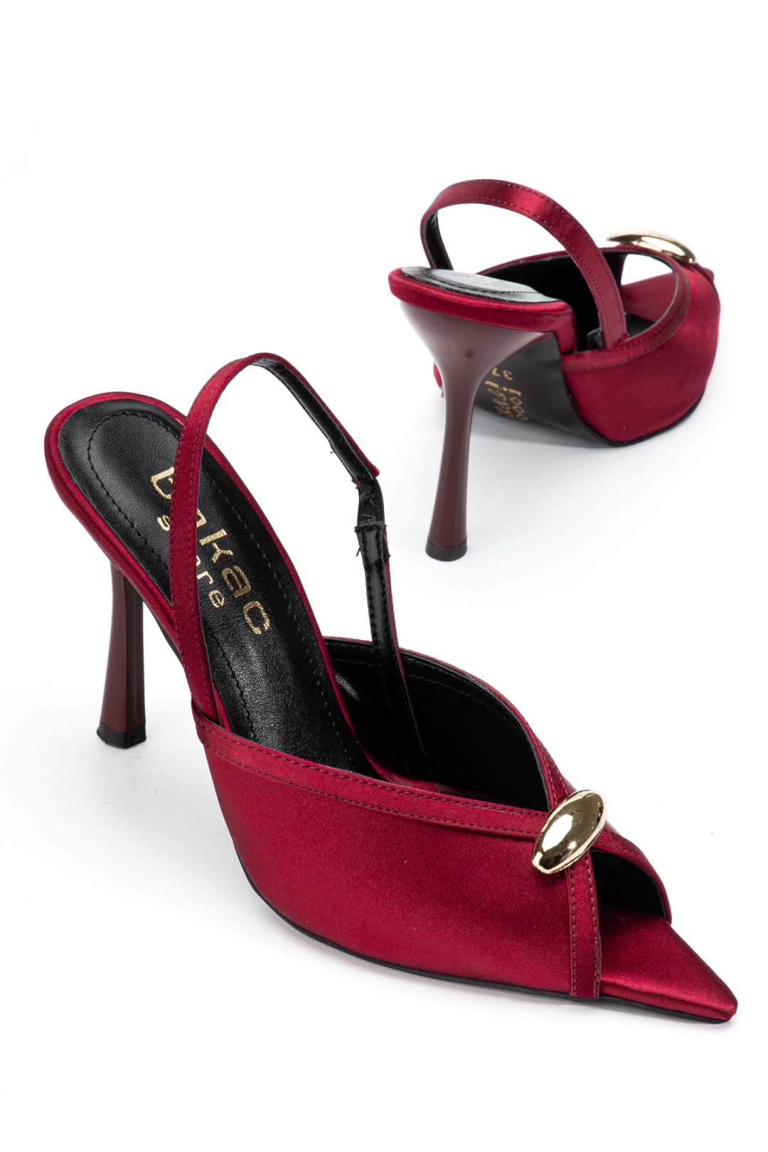 Kadın Saten Bordo Toka Detaylı Sivri Burun Topuklu Ayakkabı