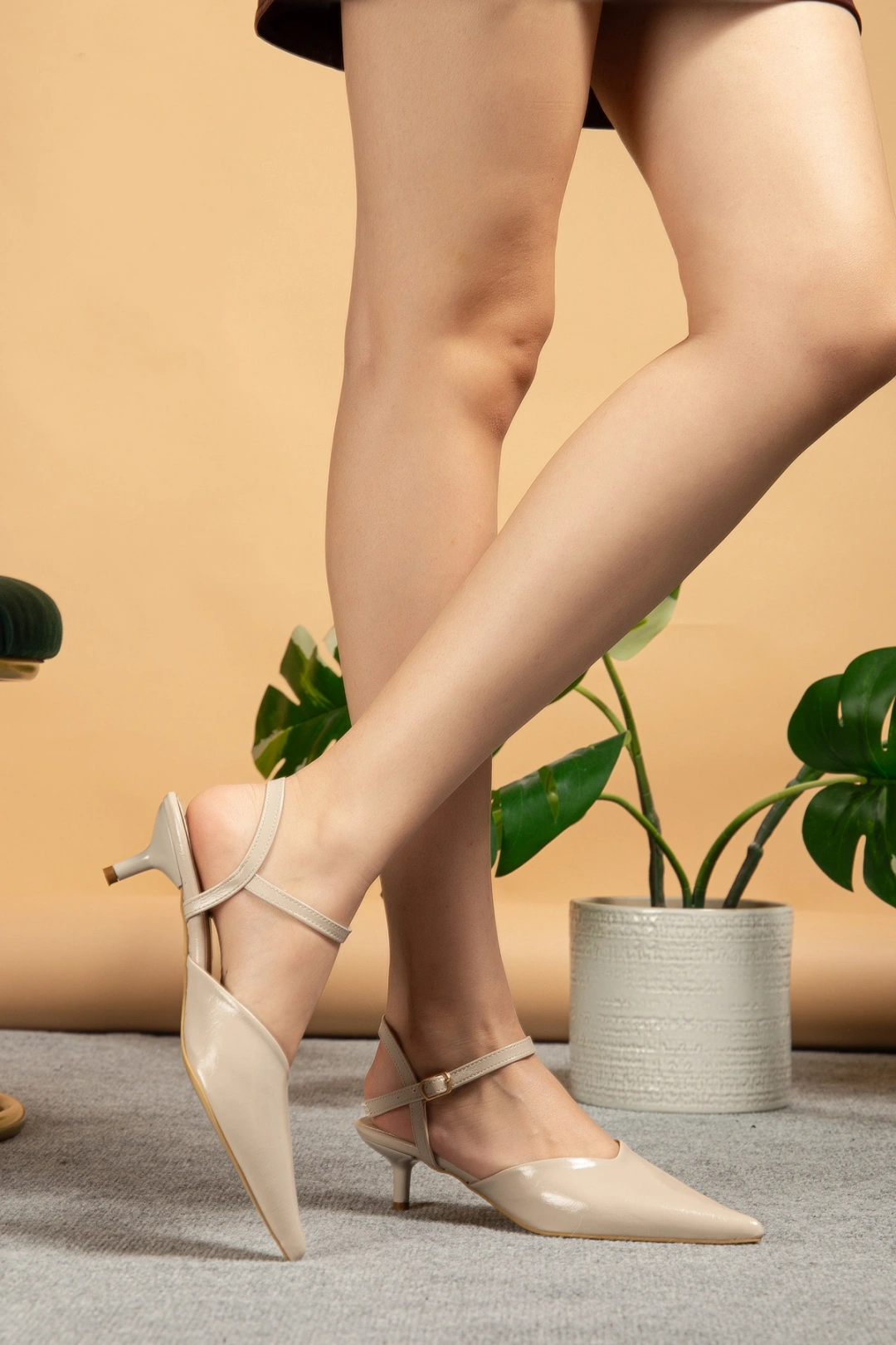 Kadın Bej Rengi Arkası Açık Sivri Burun Topuklu Ayakkabı