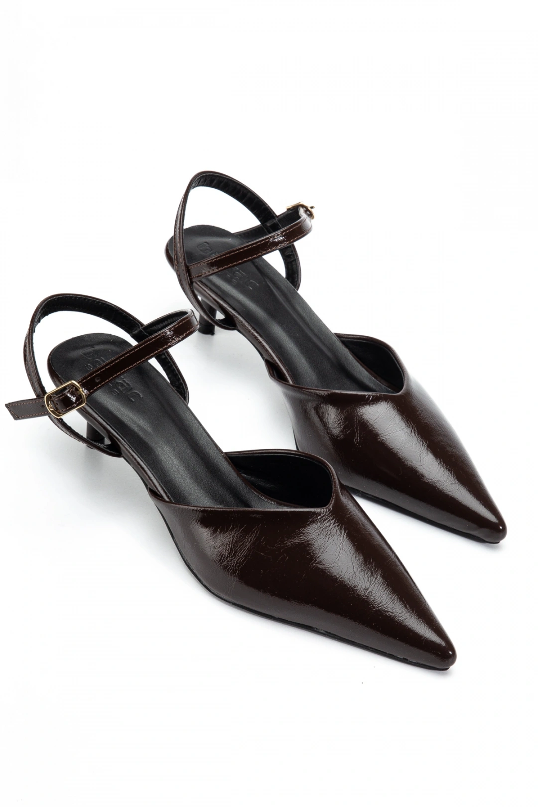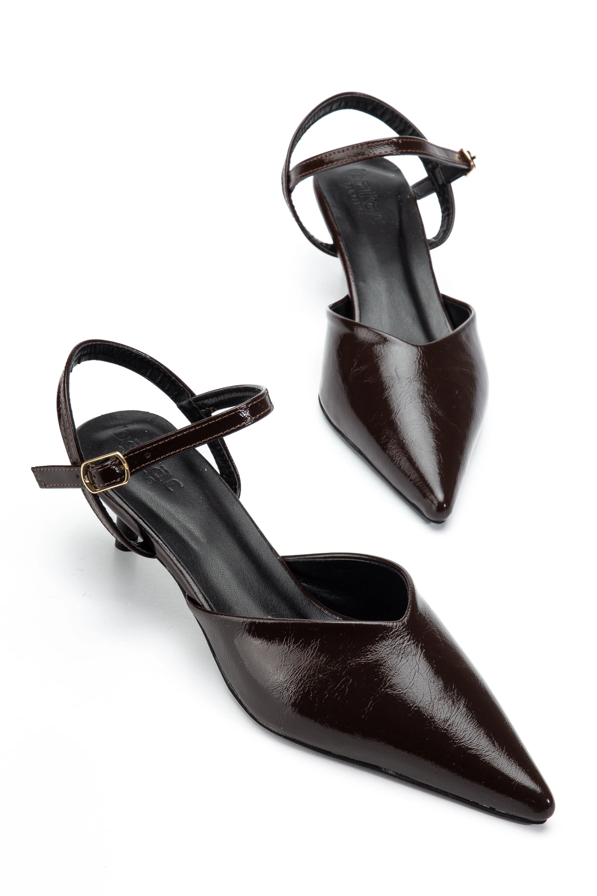 Kadın Kahverengi Arkası Açık Toka Detaylı Sivri Burun Topuklu Ayakkabı